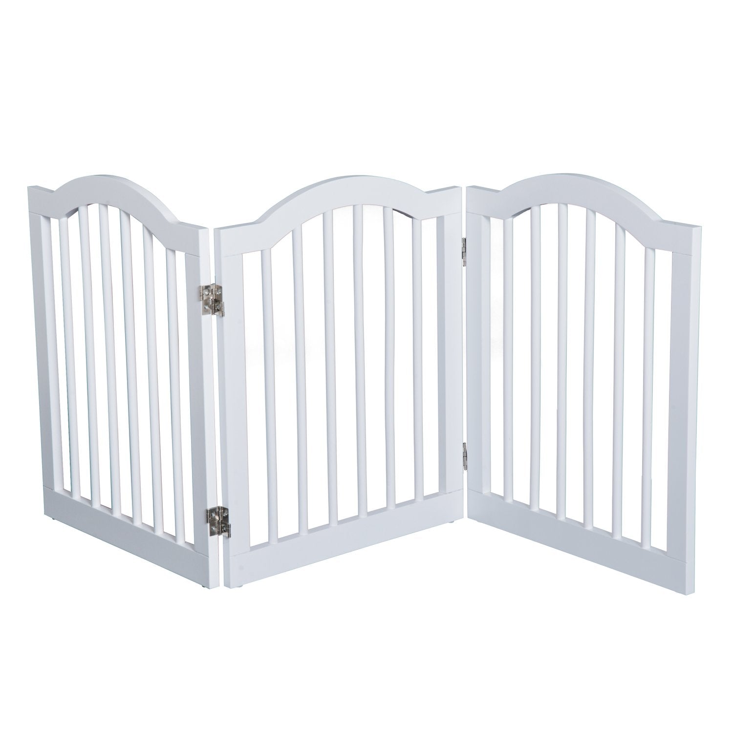 Pawhut Wooden Foldable Dog Gate Stepover Panel Pet Fence Freestanding Safety Barrier for the House, Doorway, Stairs(White)
