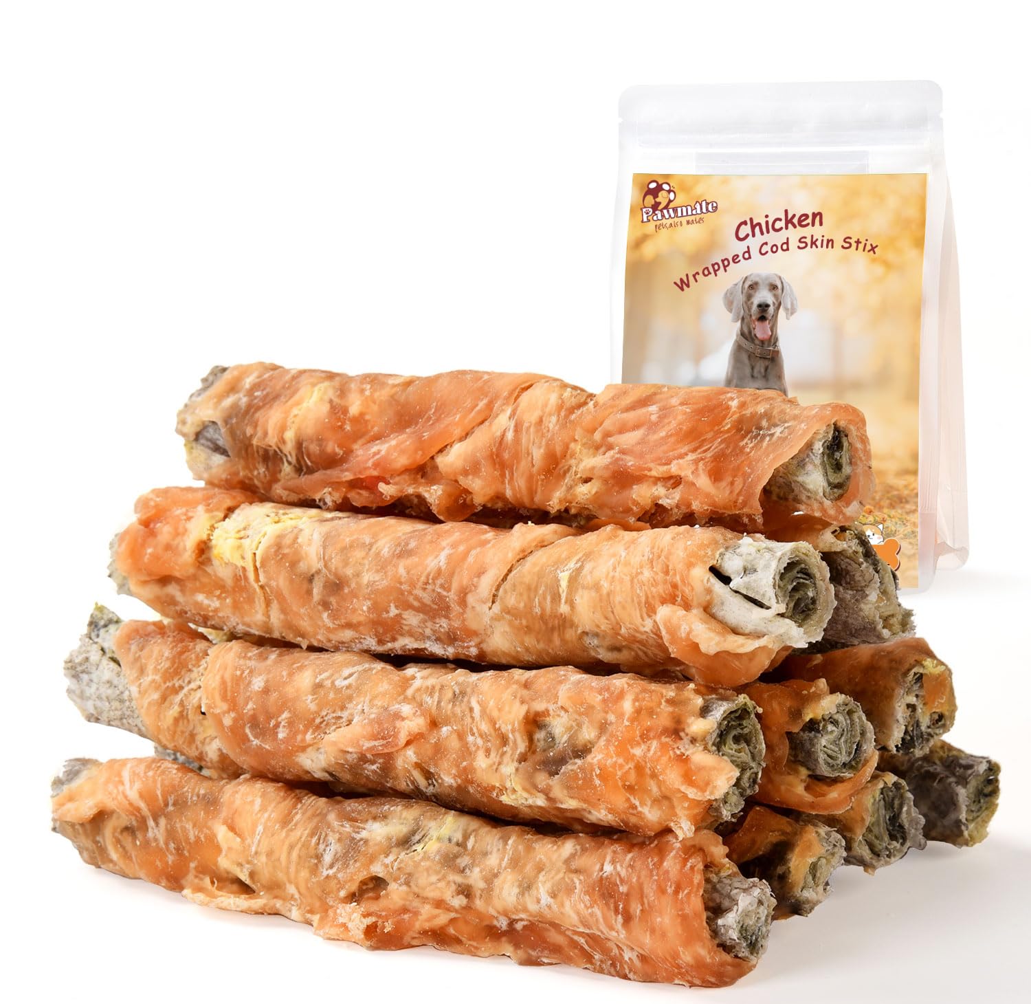 Pawmate Chicken Wrapped Cod Fish Skin Stick Dog Treats, Healthy High Protein Omega3 Cod Twist Dog Chews Real Chicken Wrap Teeth Cleaning for Large Medium Small Pets 10.5OZ