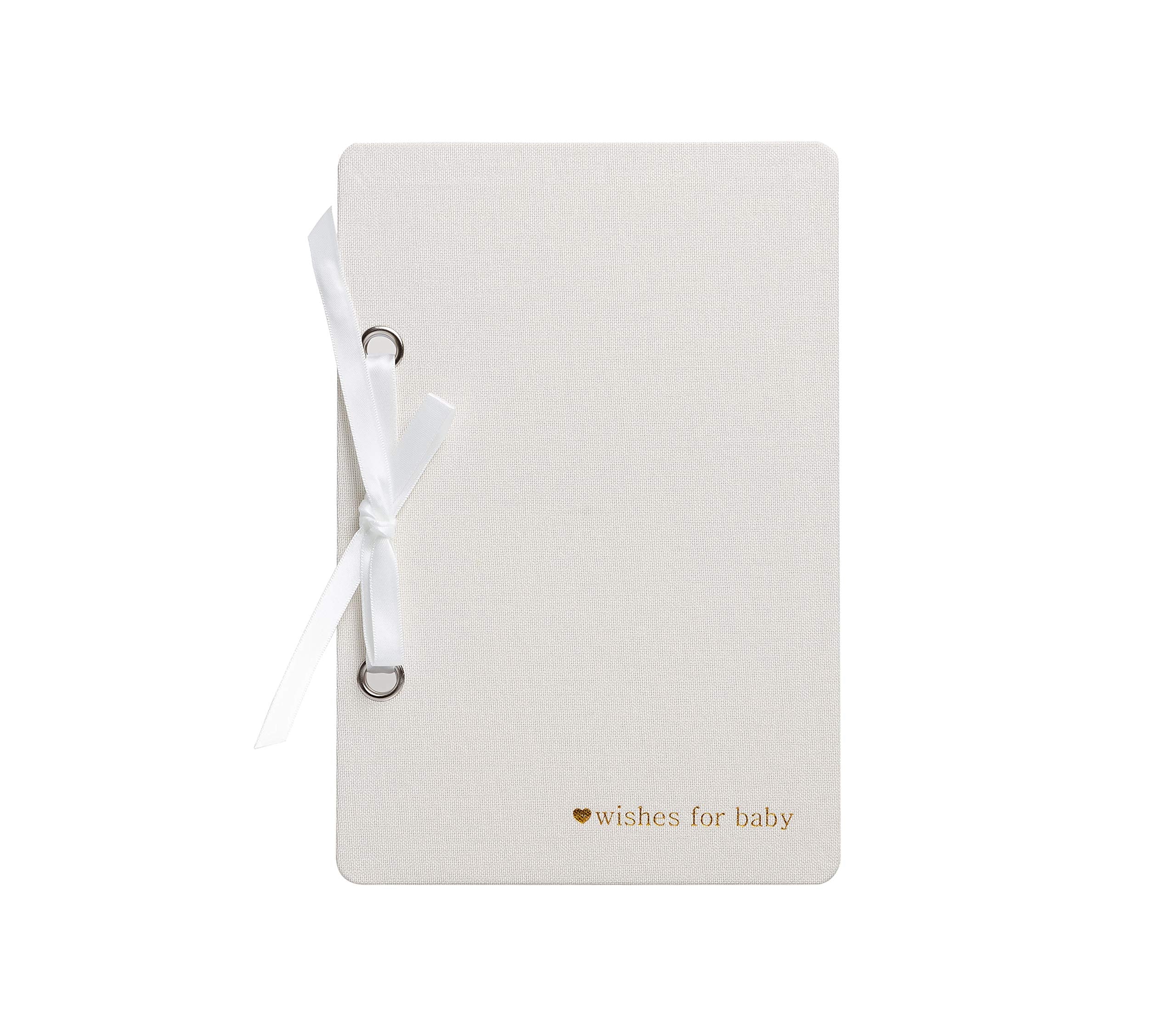 Safely store all of your baby's special well wishes and greeting cards in this simple and elegant card keepsake book. With this card book you'll forever be able to cherish special memories, from the day your pregnancy is announced, the baby shower, baby's birth, baby's first holiday, baby's first Christmas and so much more. Simply holepunch every card baby receives using the included holepunch guide sheet and string the included white, satin ribbon through each card. The length of the ribbon allows the size of this card Keeper scrapbook to adjust according to the number of cards in the keepsake at any given time. Watch as this keepsake card book grows along with baby! A small and simple sentiment, "well wishes for baby," is printed in gold and detailed with a heart on the bottom right, front corner of this card Keeper. This gender-neutral baby keepsake is the perfect baby shower registry addition, baby shower gift, expecting Mom gift or new mom gift. At Pearhead, we aim to create genuine, quality products to celebrate your special moments in life. We are a family of designers, marketers, and trendsetters bringing products to life that will bring a smile to your face. From concept and design to production and customer service, the Pearhead team works together seamlessly every step of the way. Whether your baby is celebrating their first year of life, you are announcing your pregnancy, or your pup is celebrating his first holiday season, Pearhead is here to share your moments in style. Book dimensions: 6.25" W x 9.25" H.
