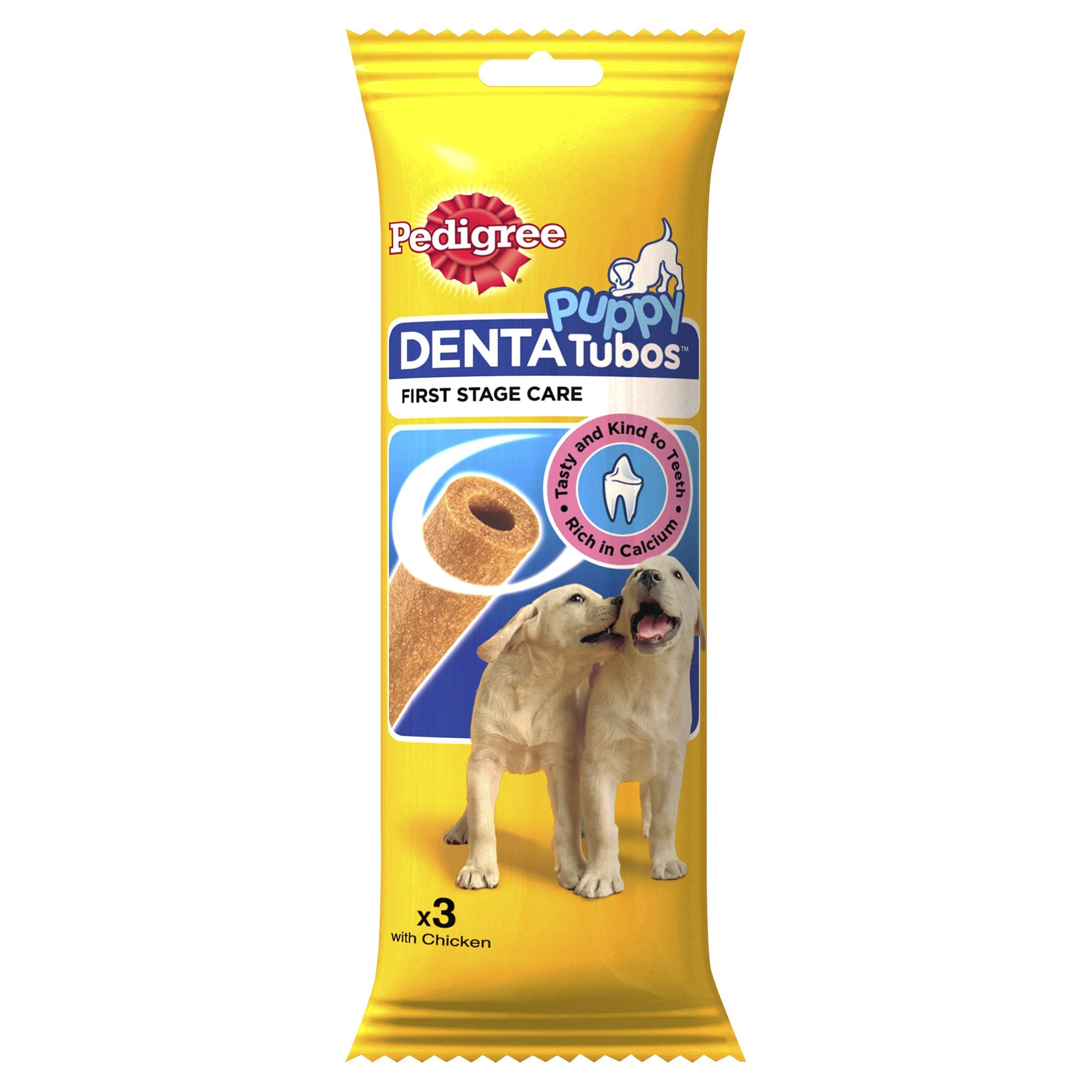 Pedigree Puppy Tubos are calcium rich with a unique shape and texture specially designed for developing teeth and gums. The tasty way to care for your puppy which makes them the perfect for treat. Omega 3 to help keep him fit for life Calcium to help give him strong teeth & bones Vitamins and Minerals to help maintain his natural defences Contains: 3 Sticks