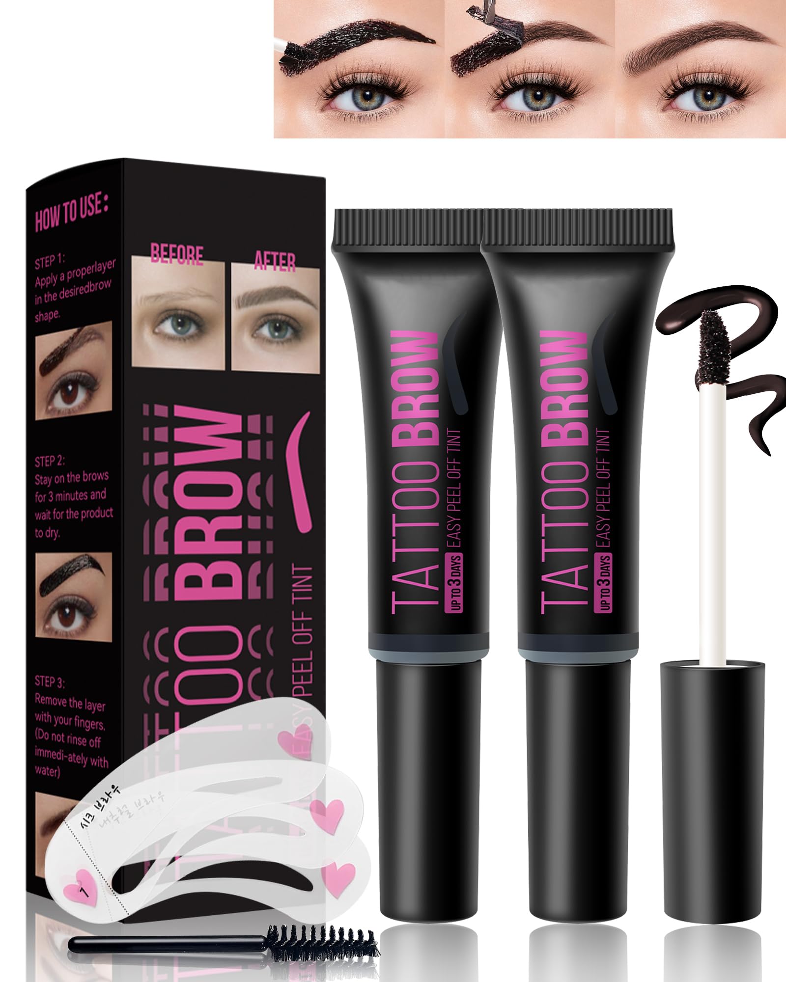 Dark Gray/Medium Brown/Black Peel Off Tattoo Eyebrow Gel-2Pcs Eyebrow Tattoo Peel Off Eyebrow Tinted Makeup, Eyebrow Tattoo Waterproof Tattoo Brow Gel, Semi Permanent Eyebrow Tinted Up to 3 Days, with Eyebrow Stencil & Brush, Cruelty Free, Three Dimensional Eyebrow, Party Holiday Birthday Daily Use, Woman and Girl Gift