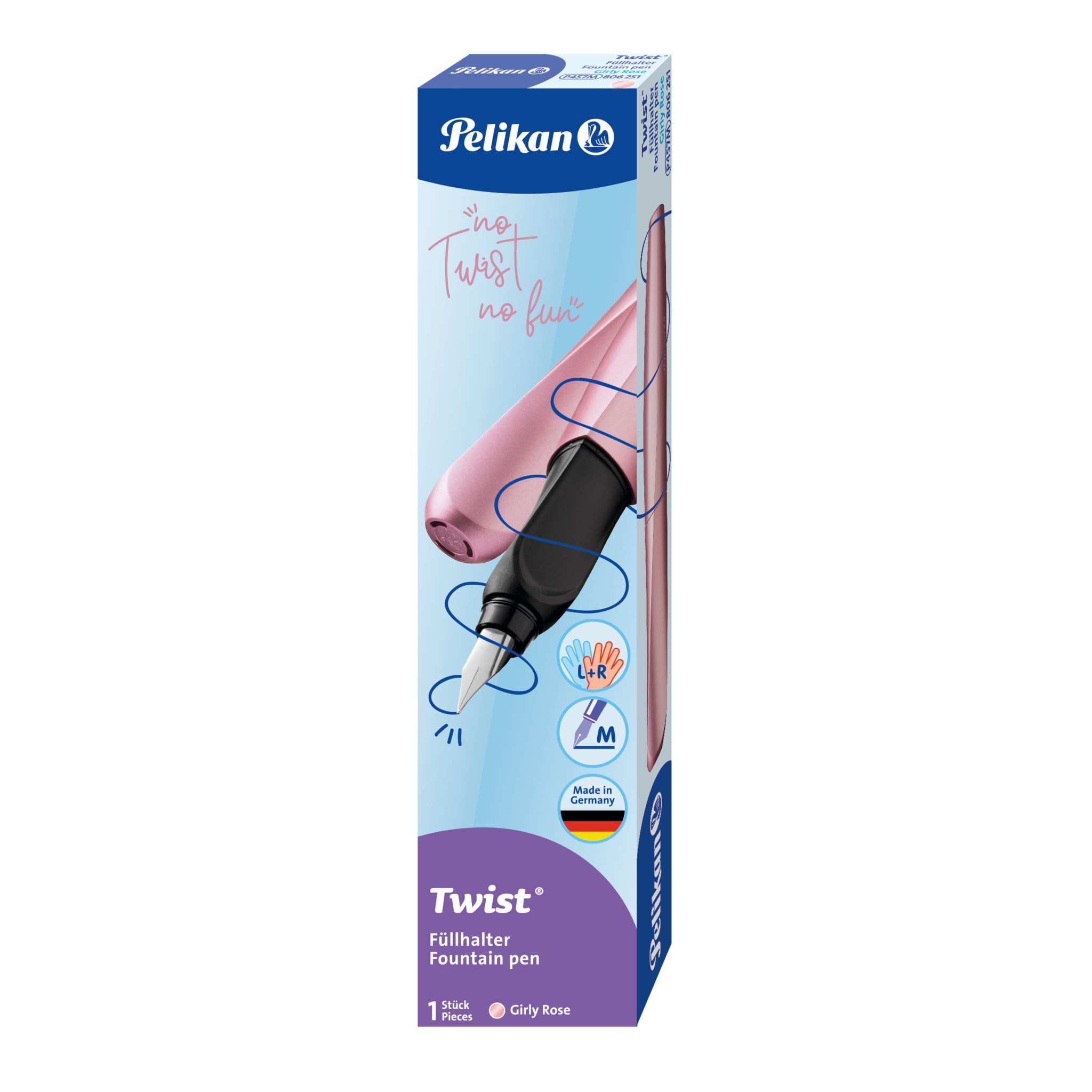 DescriptionPelikan Twist Fllhalter Girly Rose, pink-metallic, nib width: M, ergonomic shape, stainless steel spring, suitable for right and left-handed users, twisted shaft, cap in shaft colour, cartridge filling system (806251/P457M), nib width: M, ergonomic stainless steel Spring, suitable for right- and left-handed users, twisted shaft, cap in barrel colour, cartridge filling system (806251/P457M)