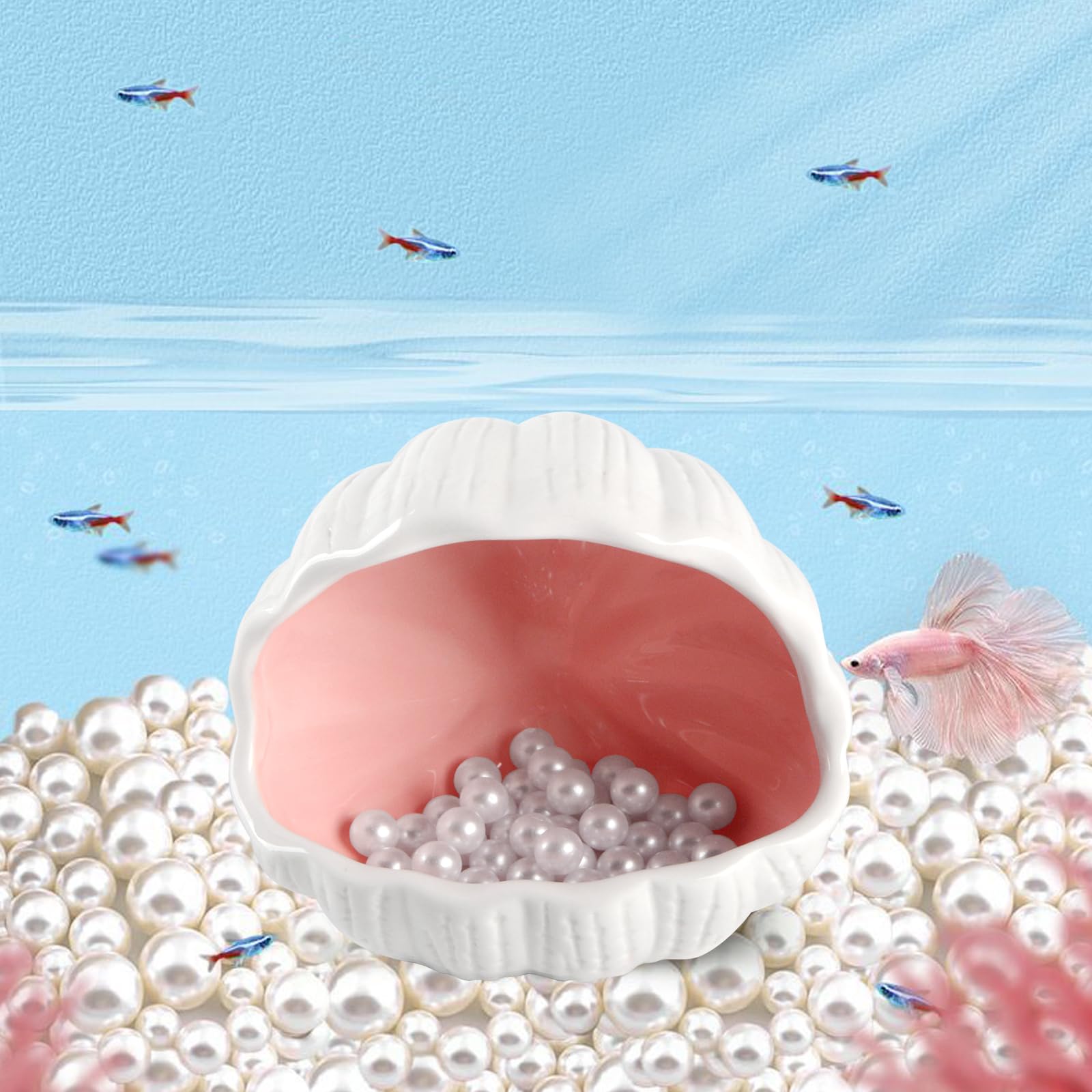 PENCK Betta Fish Tank Accessory Decor Cute Ceramic Aquarium Cave Shell Shape Fish House Hideout Ornament for Shrimp Fish Hiding Playing (Pink + 50pcs Pearl)