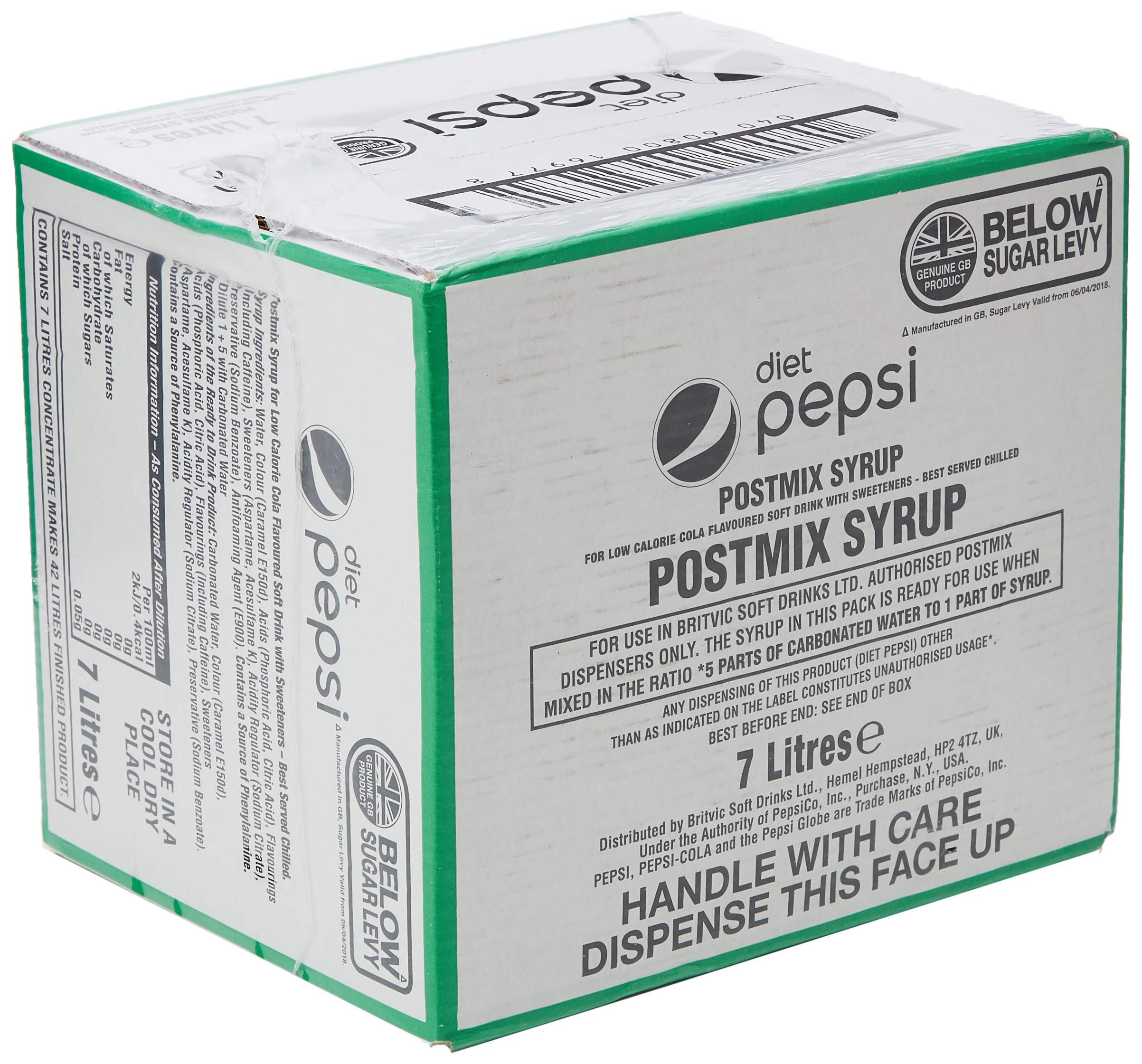 DescriptionProduct DescriptionDiet Pepsi Post Mix Syrup is intended for low-calorie cola flavoured soft drinks with sweeteners. It should be used in Britvic Soft Drinks LTD authorized postmix dispensers only.Enjoy the light, crisp, and refreshing taste of Diet Pepsi with no sugar, no calories. A bold and refreshing fizzy drink.No SugarNo CaloriesBest served chilledIngredientsCarbonated Water, Colour (E150d), Acids (Phosphoric Acid, Citric Acid), Flavourings (Including Caffeine), Sweeteners (Aspartame, Acesulfame K), Acidity Regulator (Sodium Citrate), Preservative (Potassium Sorbate). Contains a Source of Phenylalanine.DirectionsFor use in Britvic Soft Drinks Ltd. authorised postmix dispensers onlyManufacturer Contact InformationHemel Hempstead, HP2 4TZ