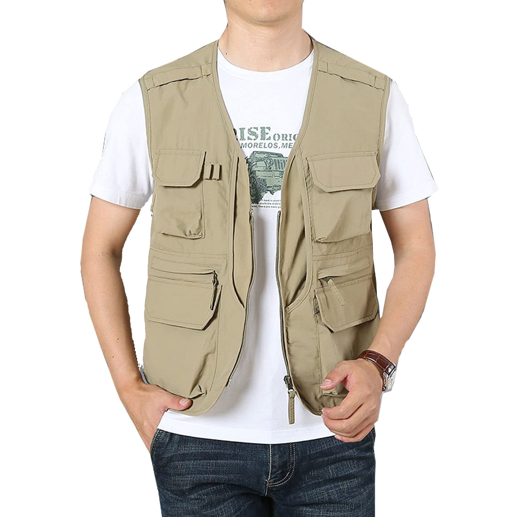 Perbai Men's Black Utility Fishing Vest Outdoor Summer Lightweight Work Photo Safari Cargo Vest(Khaki-S)