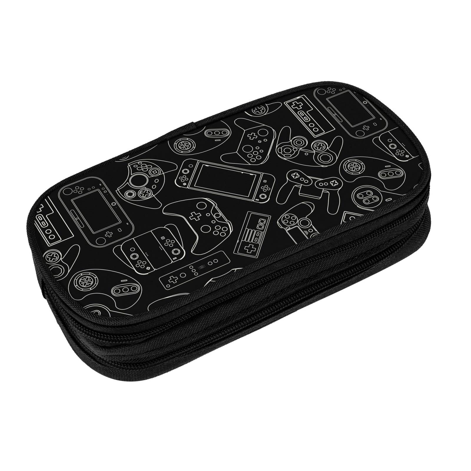 Perinsto Video Game Controller Background Pencil Case Big Capacity Multi Compartment Stationery Box Gaming Gadgets Pencil Pouch Holder Desk Organizer For School Office Home, Black