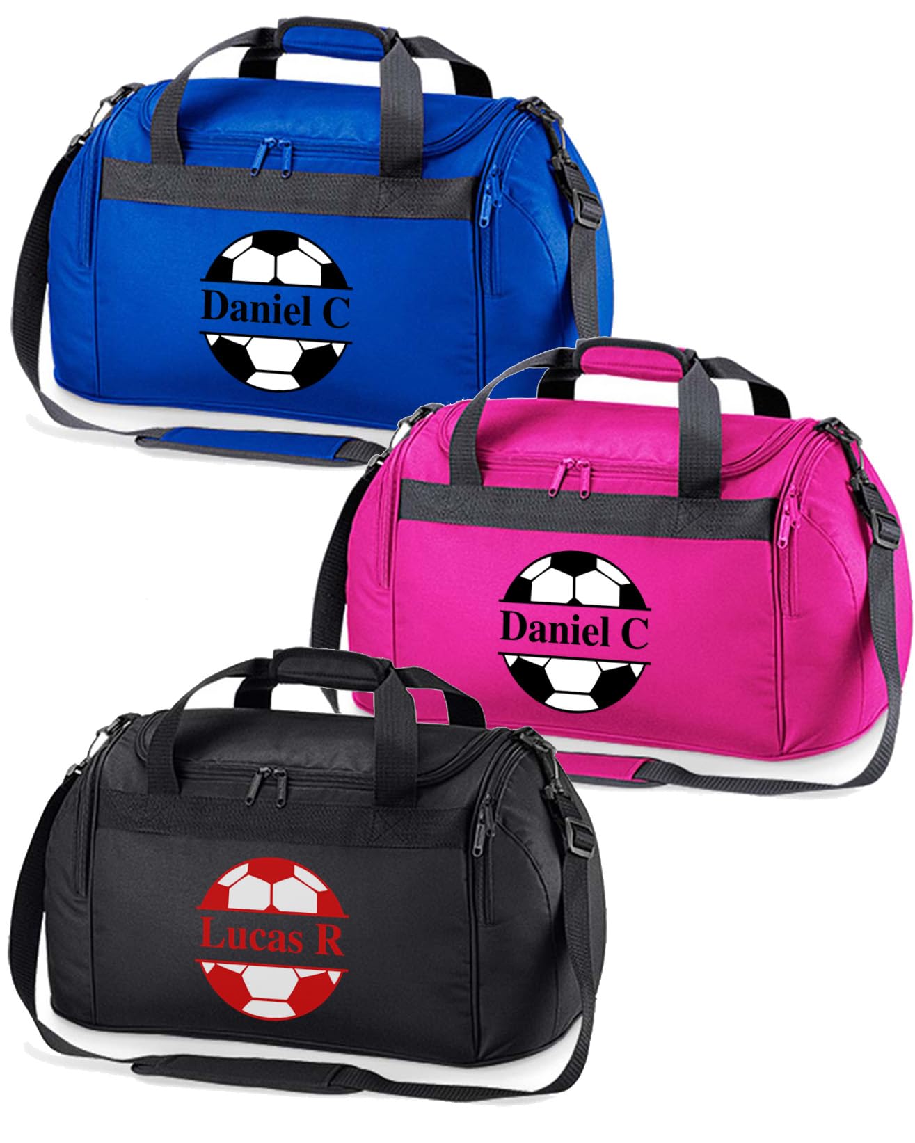 This Football Holdall Bag is the perfect sports bag for kids going to training, matches, or just kicking around with friends. With enough room to fit all the necessary football gear and personalised with the kid's name, it's sure to be a hit. It is designed to be strong, and made from durable waterproof material to protect your child's belongings from any elements. The bag also features adjustable carry straps, as well as two side, and one front pocket, for added storage space and making sure your kid's essentials are easy to find. The bag also comes with an interior section that helps to keep dirty and clean items separate, as well as a pass protection pocket. This Football Holdall is the ideal accessory for personalised style - perfect for any Football team, school or club.