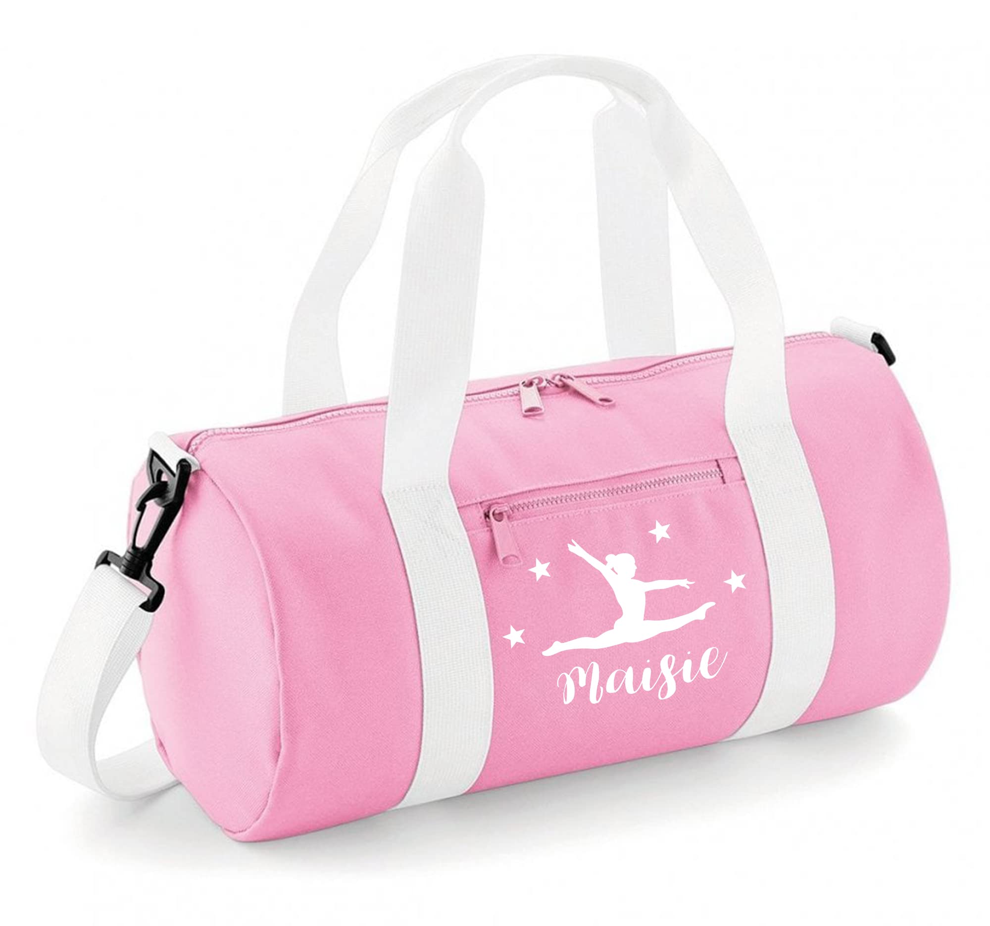 Personalised Gymnastics Bag for Girls Gym Kit Barrel Bags Dance Shoes Holdall Kids Back to School Accessories Custom Name Gift for Her (POWDERPINK-White)