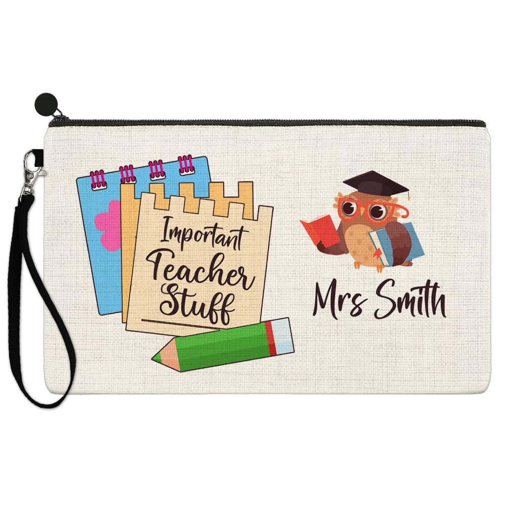 Personalised Important Teacher Stuff Pencil Case - Teacher Appreciation Thank You Gift - Makeup Bag Carry Case - Accessories Pouch for Nursery Preschool High School for Ladies / Mens Women Best Gift