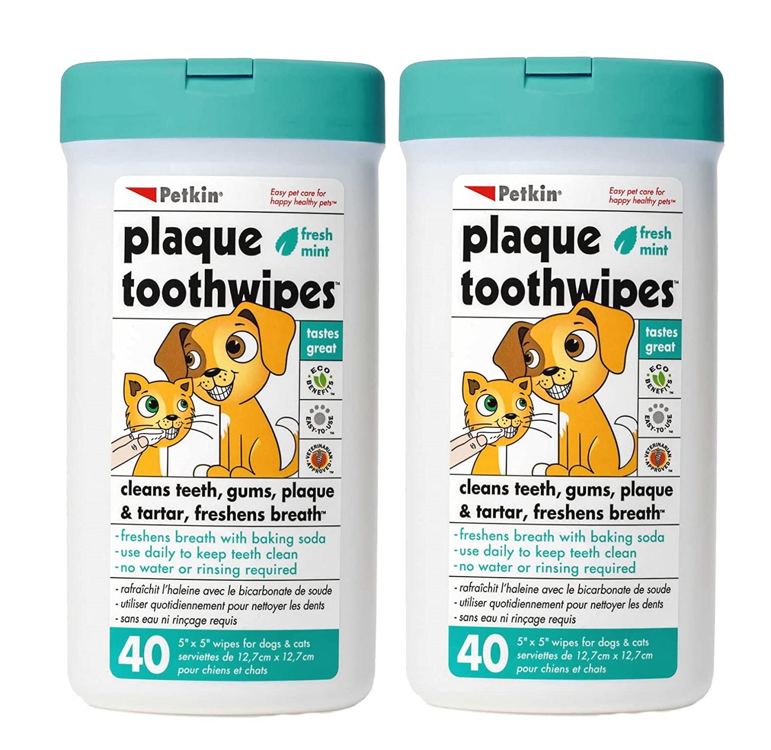 These wipes provide a convenient way to keep your furry friend’s teeth and gums healthy by wiping away daily residue. Each soft wipe is moistened with natural baking soda and mint flavor to gently clean while freshening his breath.