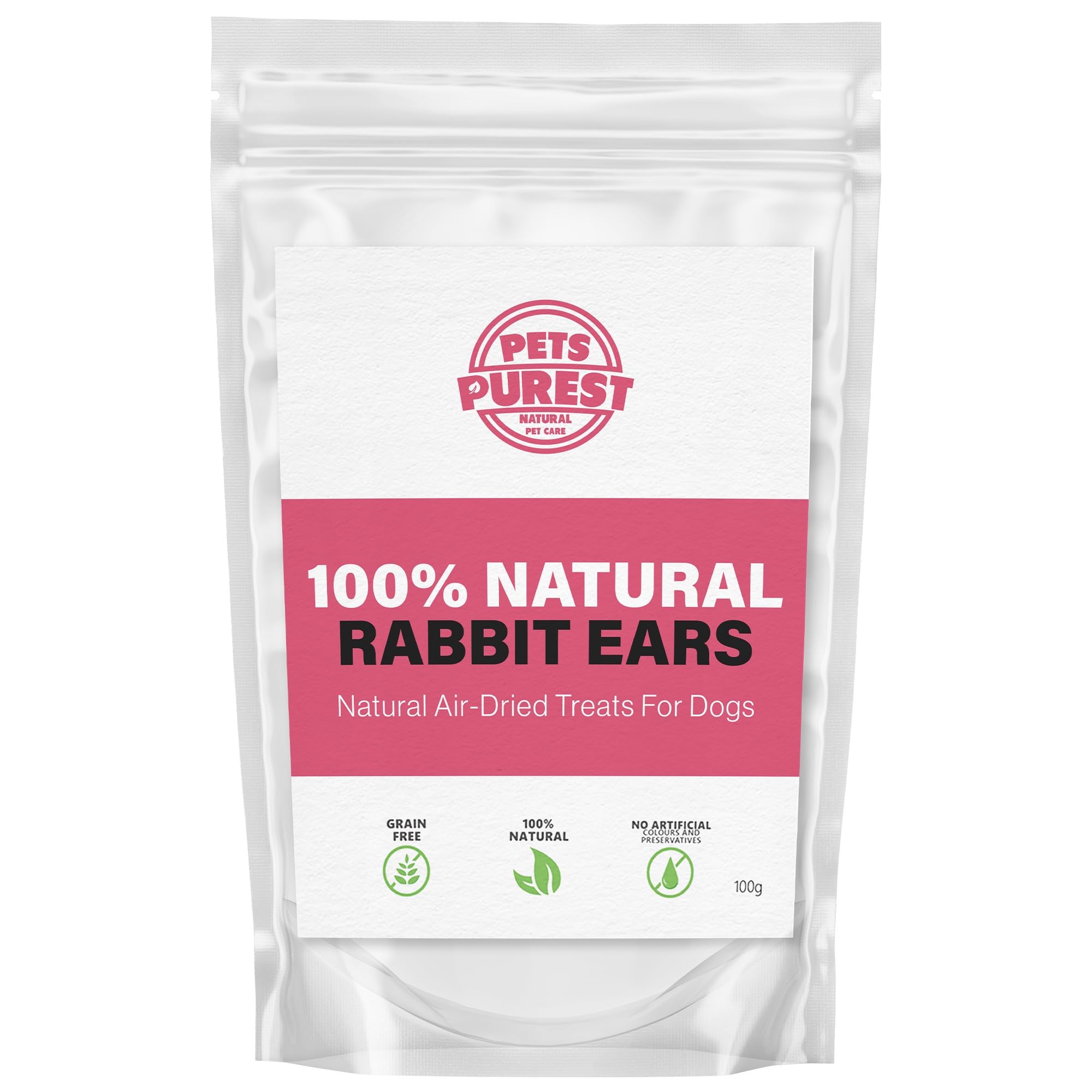 What makes Pets Purest different? Pets Purest is the only UK pet care brand to use 100% natural ingredients. Our customers trust us to use the very best and we will not sacrifice the quality of our products by using cheap ‘naturally derived’ chemicals. Our Pets Purest rabbits ears for dogs are 100% natural and delicious. They are 100% pure, containing only rabbit ears. They are also grain, glucose & lactose free, hypoallergenic, naturally air-dried, and contain no junk, no additives, no chemicals and no preservatives. Pets Purest are dedicated to producing the best product possible, we do not compromise on quality. Our customers trust us to create products that are safe, effective and natural. These sensitive dog treats are a great addition to any pet raw food diets and are trusted by our informed customers. They are safe for sensitive stomachs and a healthy treat with no junk. At Pets Purest we believe in our products which is why we offer a 100% Satisfaction Guarantee so you can purchase with peace of mind and know that you will never be out of pocket. These edible delights are a suitable puppy chew and natural dog chew, or even as animal dog treats, hypoallergenic dog chews or all around healthy dog chews.