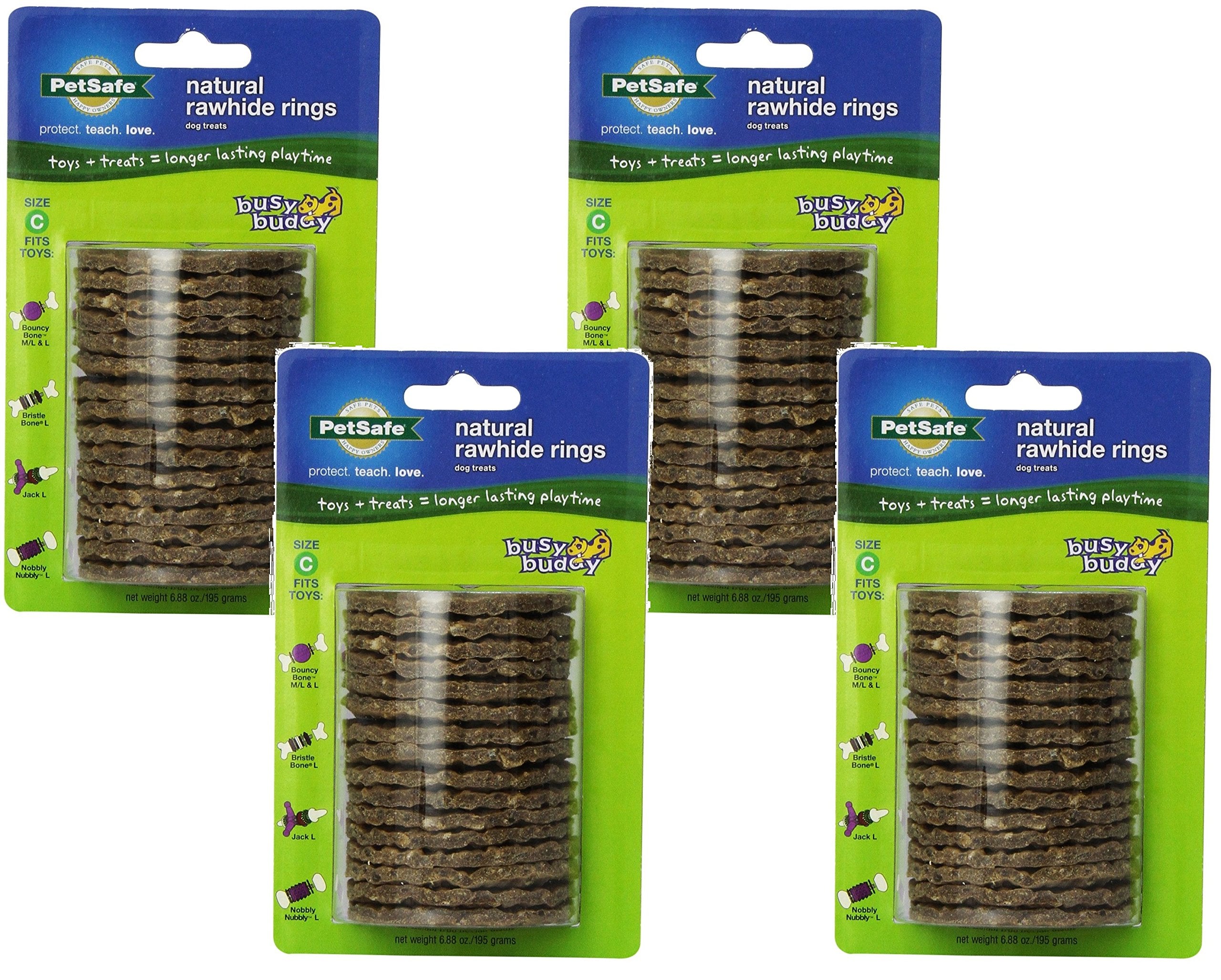 PetSafe (4 Pack) Busy Buddy Refill Ring Dog Treats for Select Busy Buddy Dog Toys, Natural Rawhide, Size C