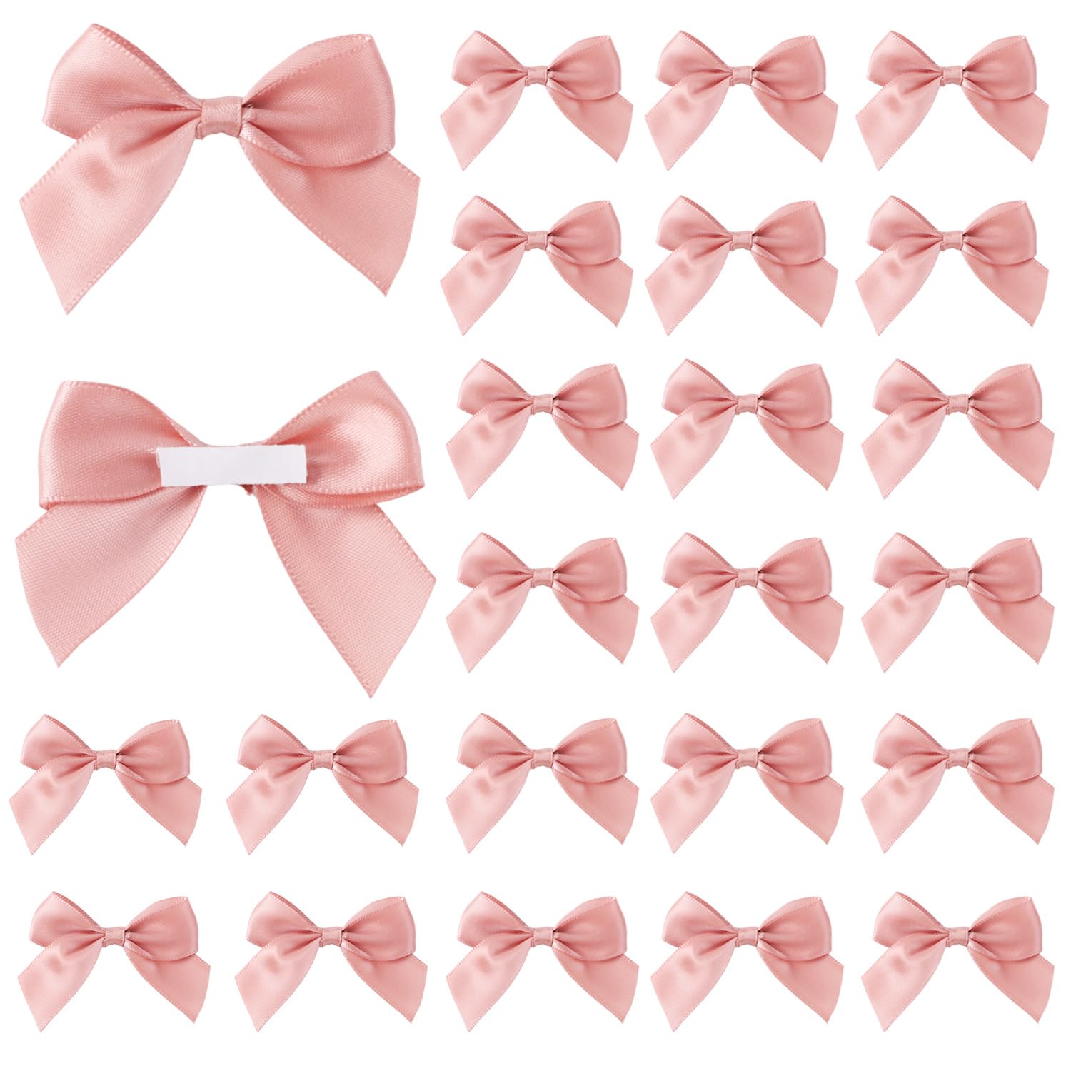 PEUTIER 60pcs Baby Pink Satin Ribbon Bows, 2x2.5 Self-Adhesive Small Bow with Double-Sided Tape Premade Mini Bow Sticker for Gift Wrapping DIY Craft Treat Bags Home Wedding Party Decoration