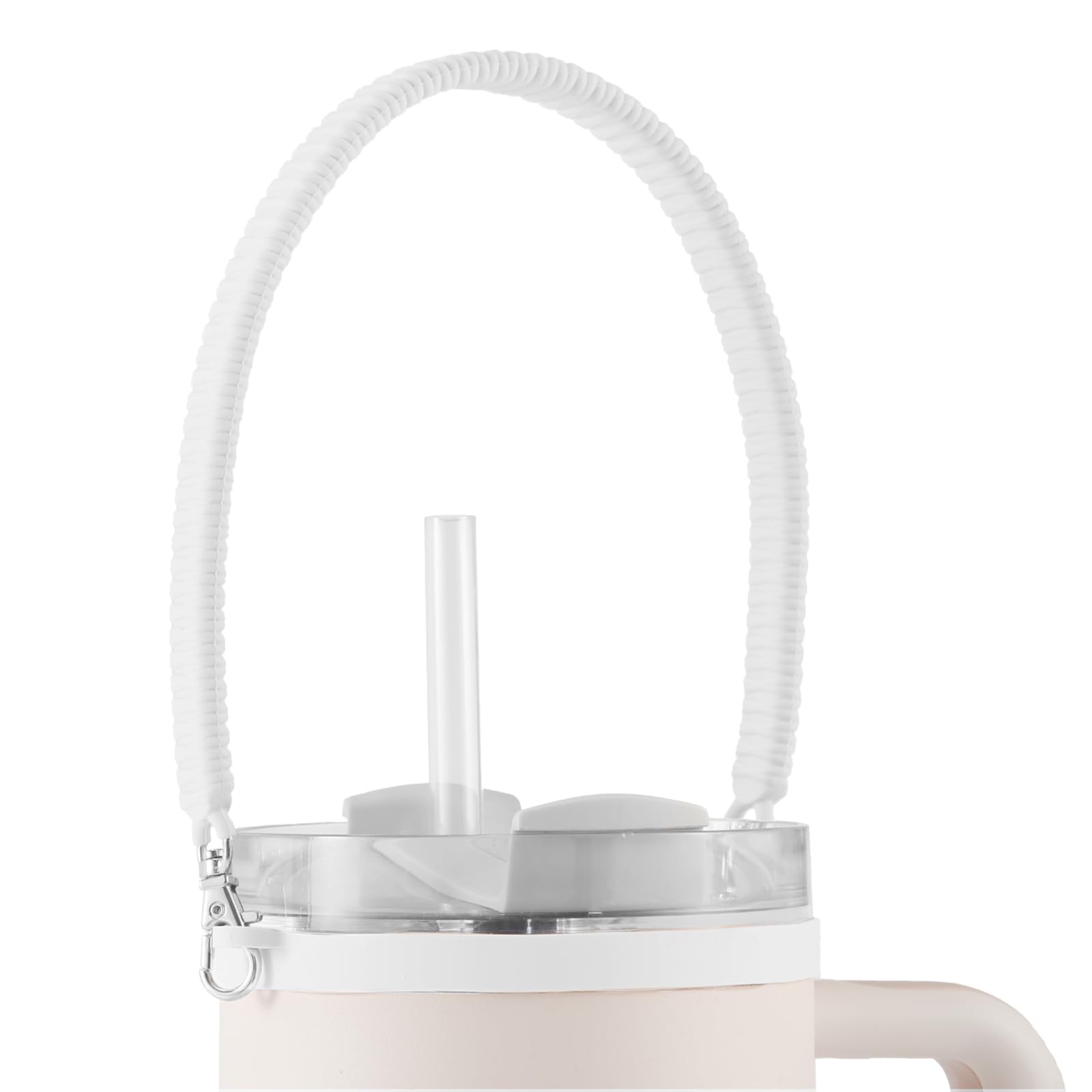 PEUTIER Water Bottle Handle Attachment for Stanley, Silicone Water Bottle Holder with Strap Portable Water Bottle Sling Carrier on Top, Lanyard Accessories for Most 8-40oz Cups (White)