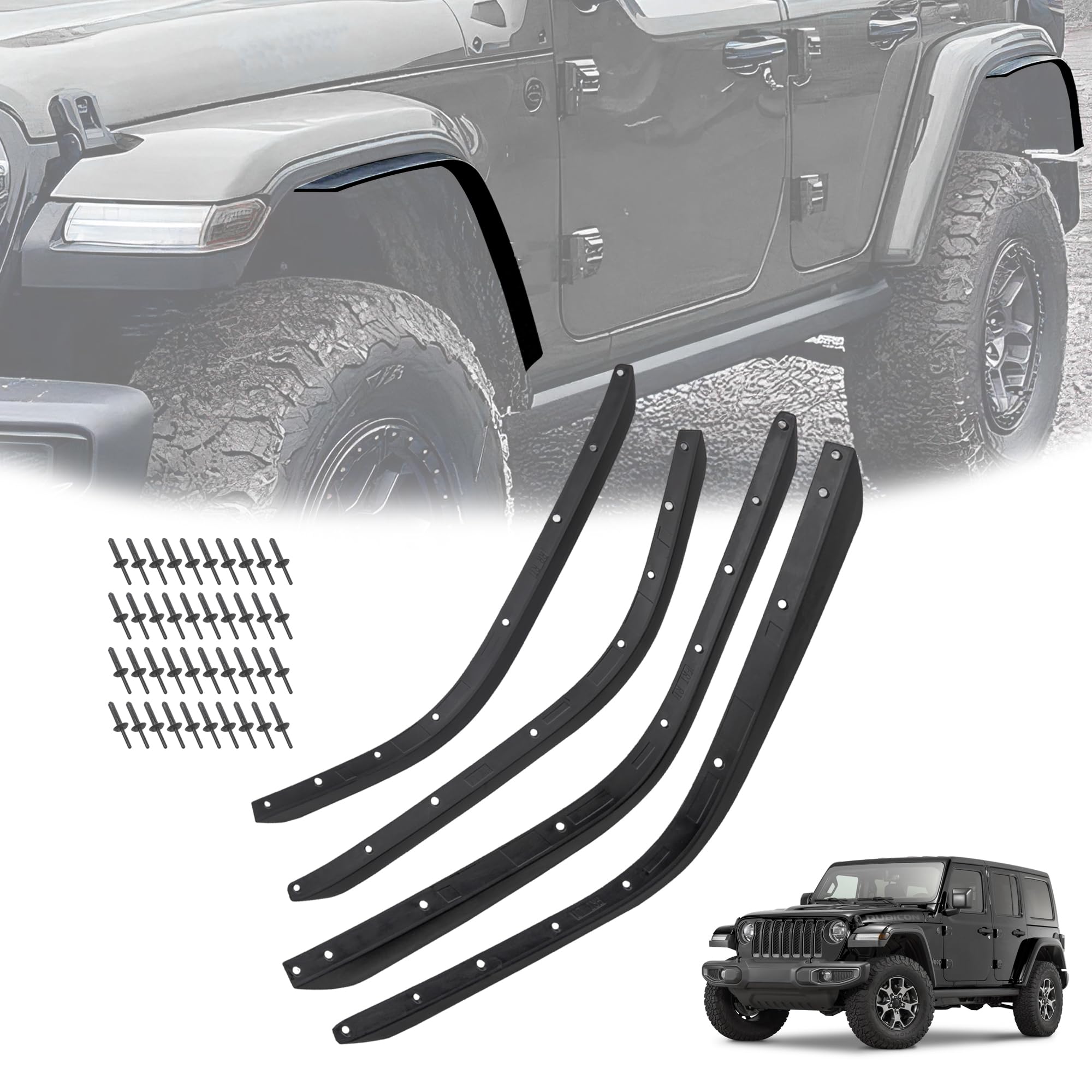 Phamyor Front & Rear Fender Flares Extensions Set Fit for 2018-2023 Jeep Wrangler JL & JLU Unlimited 2/4 Doors, Not Fit Low Clearance Fender Flares, Off-Road Wheel Flares Liner, Black, 4pcs,