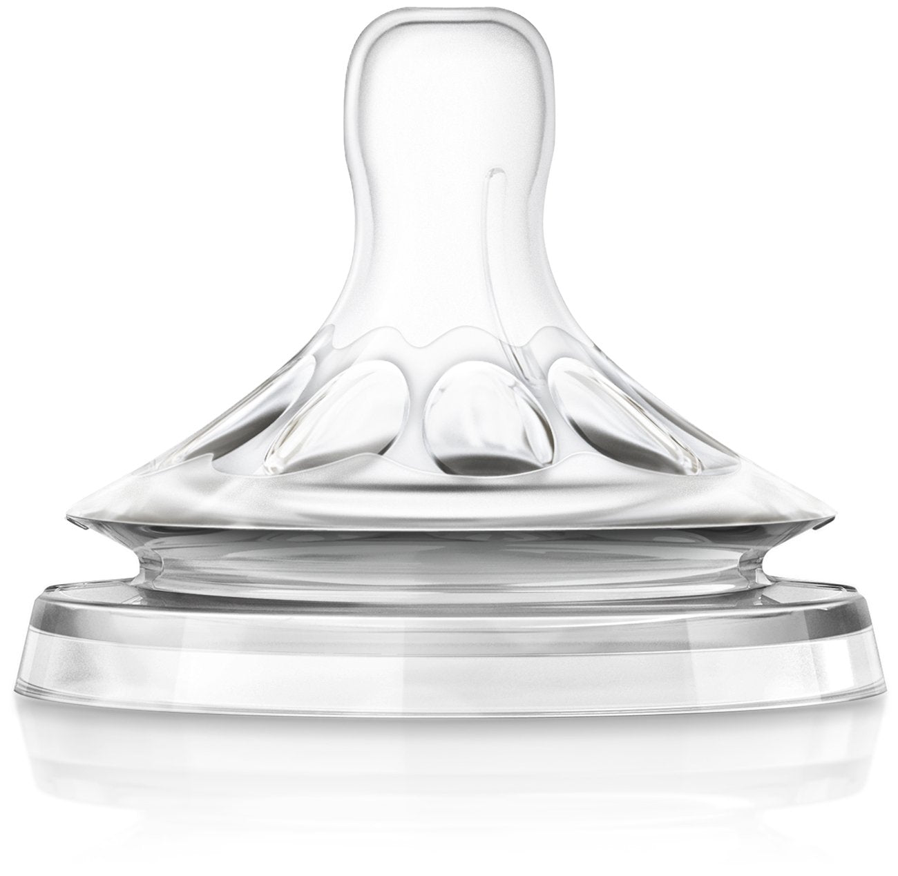 Philips AVENT SCF657/25 Natural First Flow Nipple is designed to make it easy to combine breast and bottle feeding. The wide, breast-shape and unique comfort petals make the nipple softer and more flexible to promote natural latch-on. The petals also reinforce the shape of the nipple to prevent it from collapsing in baby's mouth so your baby can feed contentedly and without interruption. The nipple's shape encourages the same tongue movements suckling babies use when breastfeeding, so transition between the two is less confusing for your baby. The First Flow Nipple is designed for preemies and newborns and features a controlled, slow flow. The Natural nipple features twin anti-colic valves that work to make feeding more comfortable for babies. During feeding, the valves release air back into the bottle rather than into your baby's tummy, which reduces colic and discomfort. These nipples are made of soft, durable silicone, which is odorless and flavorless. The nipples can be sterilized in any Philips AVENT steam sterilizer, boiled for five minutes, or washed in the dishwasher.Always use this product with adult supervision. Never use feeding nipple as a pacifier. Continuous and prolonged sucking of fluids will cause tooth decay. Always check food temperature before feeding. Keep all components not in use out of the reach of children. Before first use, clean the product. Inspect before each use and pull the feeding nipple in all directions. Throw away at the first signs of damage or weakness. Do not store a feeding nipple in direct sunlight or heat, or leave in disinfectant (‘sterilizing solution’) for longer than recommended, as this may weaken the nipple. Do not place in a heated oven. Before first use place in boiling water for 5 minutes. This is to ensure hygiene. Clean before each use. Wash in warm soapy water and rinse thoroughly, then sterilize using a Philips AVENT sterilizer suitable for Natural bottles or boil for 5 minutes. Do not warm contents in a microwave oven, as this may cause uneven heating and could scald your baby. Dishwasher safe - food colorings may discolor components. Do not allow child to play with small parts or walk/run while using bottles or cups. For hygiene reasons, we recommend replacing nipples after 3 months. For optimum performance, pinch and massage the number on the nipple between index finger and thumb prior to feed. Keep in a dry, covered container. Only use Philips AVENT Natural nipples with Philips AVENT Natural feeding bottles.