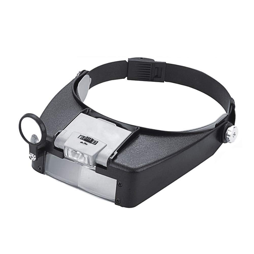 This head magnifier and light suitable for reading, jewelry appraisal, watch repairing, crafting, painting, sewing, knitting, nail art, eyelash, engraving, art or collectibles inspection, electronic device, mechanical
