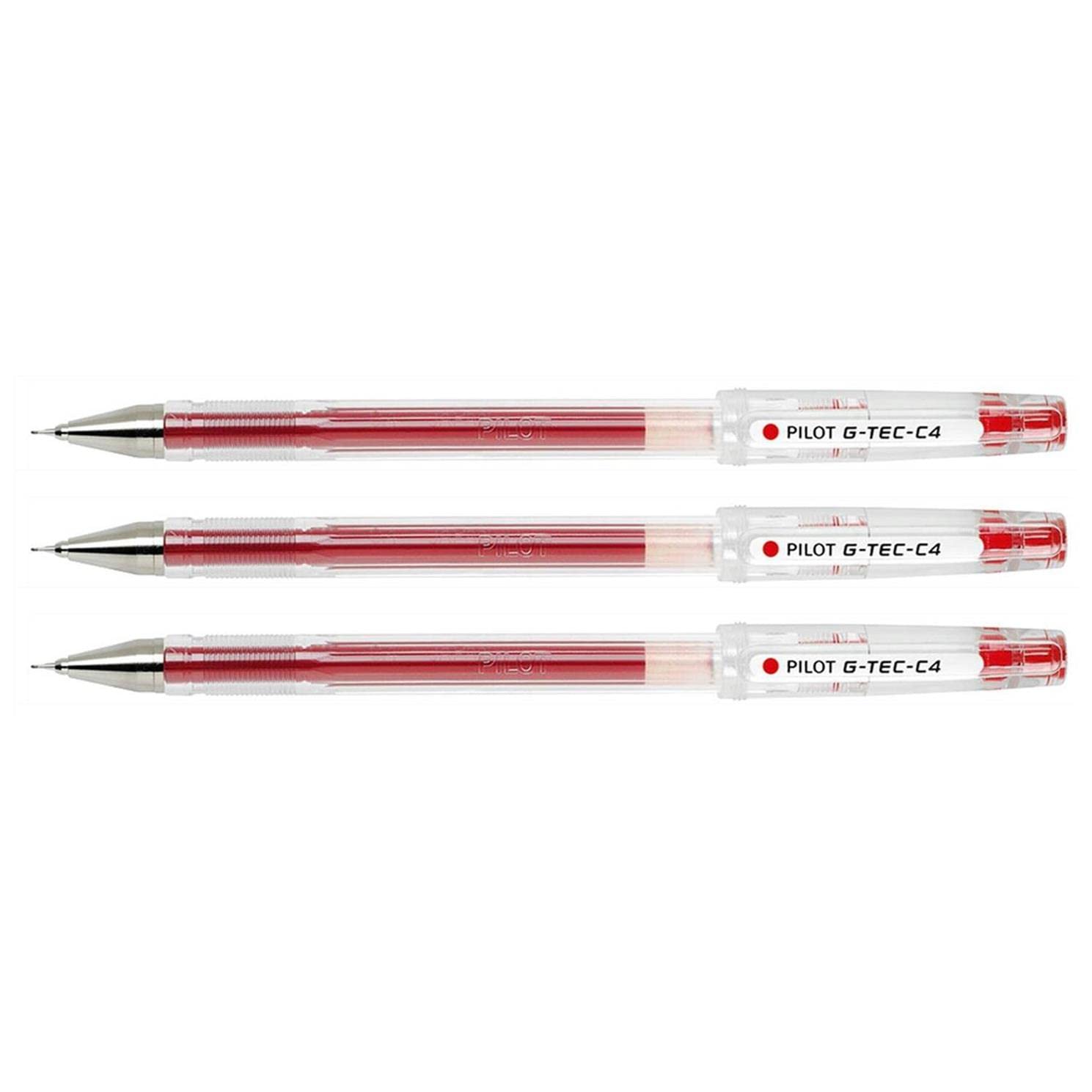 Pilot G-TEC-C4 Gel Ink Rollerball Pens Ultra Fine Red Pack of 3aa