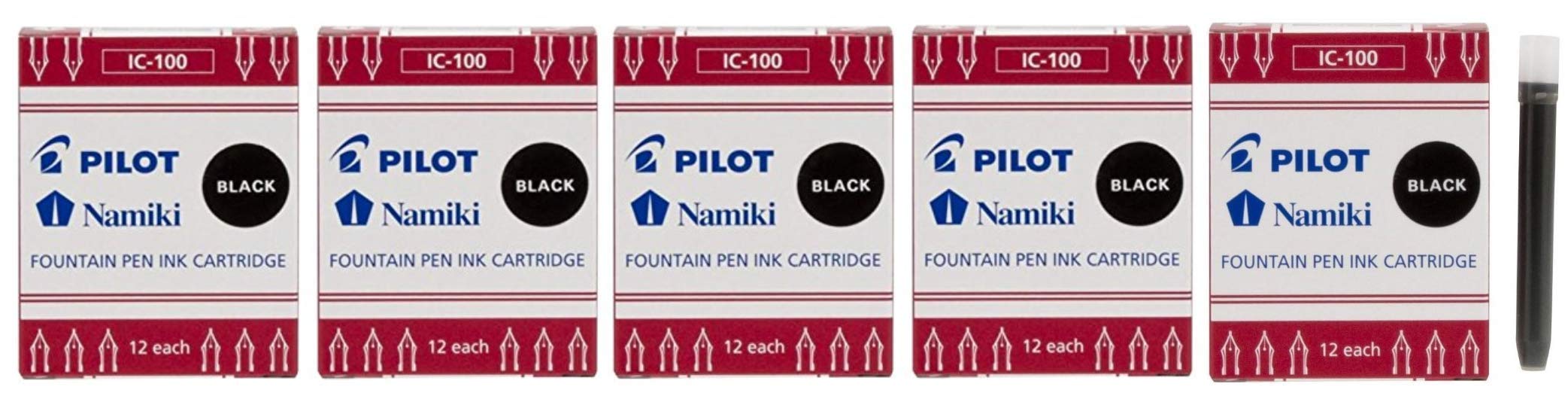Pilot Namiki IC100 Fountain Pen Ink Cartridge, Black, 12 Cartridges per Pack, 5 Pack