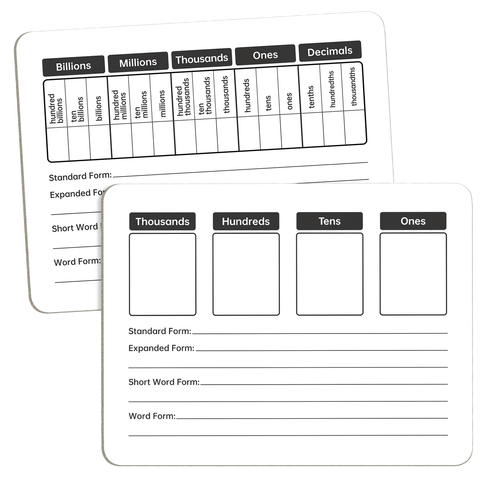 Place Value Board 9" x 12" Double Sided Dry Erase Boards for Students for Teaching Place Values from Billions to Decimal Numbers Math Manipulative Lapboard for Home School and Classroom