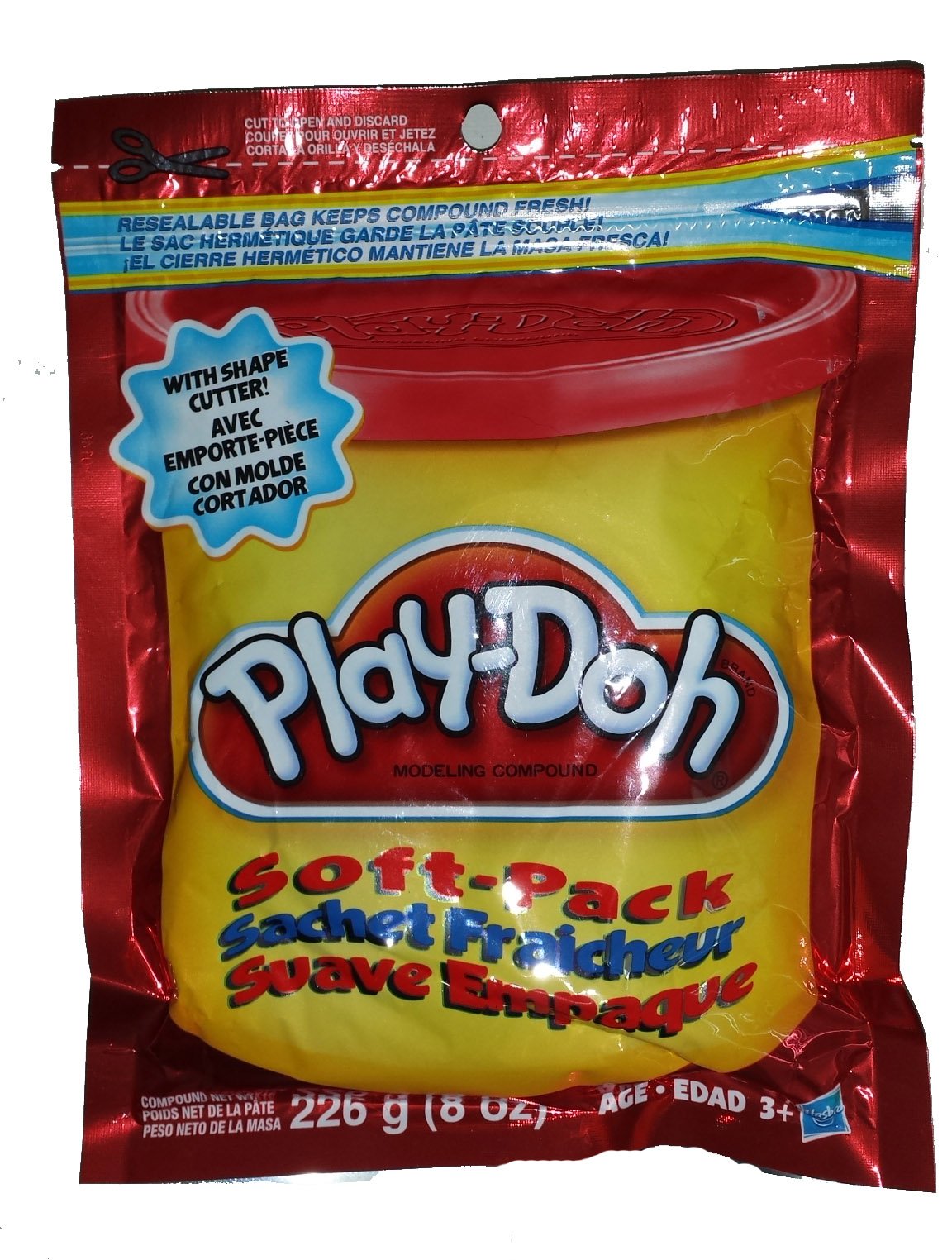 Play-Doh Soft Pack Red. Its packable, portable fun with this resealable bag that keeps modeling compound fresh! Now you can have ON-THE-GO PLAY-DOH modeling compound! Just pull the compound out of the bag and start molding and shaping! The soft-pack is easily stored in purses, backpacks or other travel bags! Just take it out, open the bag and youve got instant creative fun! Pouch contains 8 oz. of modeling compound and one shape cutter.