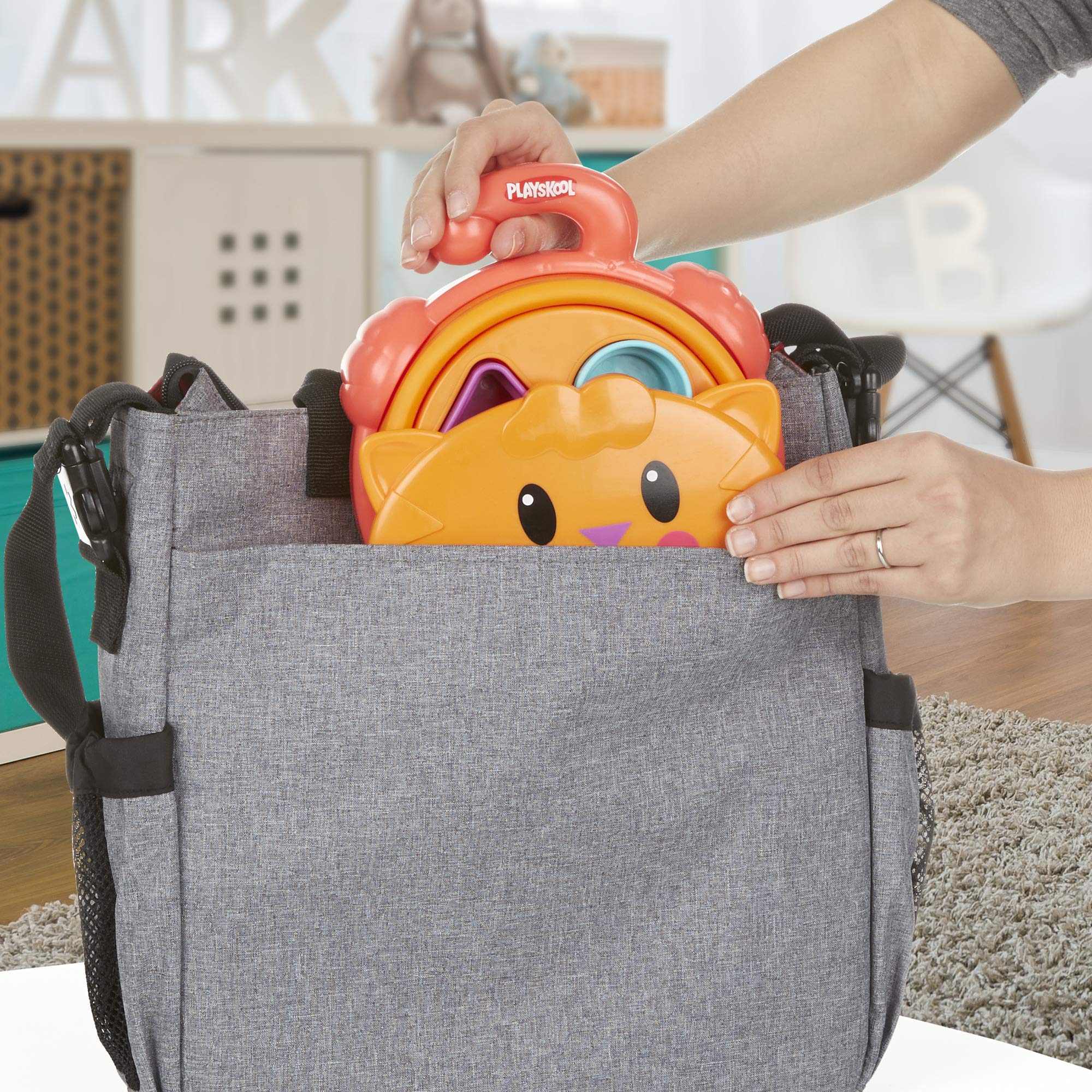 When you're a toddler, it's perfectly ok to try shoving a triangle into a heart-shaped hole (no judgment here.) The simple delights of matching and sorting activities with a play-my-way vibe are what toddler toys should be, right? Easy storage for families would be nice, too. That's why this Playskool shape sorter for toddlers just might be a match! Your Tiny Tinkerer will love figuring out where the triangle, heart, star, and circle shape pieces go. They can also take apart the 4 shapes and try to figure out how to match the 2 pieces together, and the shapes store neatly in the collapsible cat-themed container. Pack it flat and you've got a great toddler travel toy or gift for 18 month olds that won't take too much space. 2 year olds will probably love it, too!Playskool and all related properties are trademarks of Hasbro.