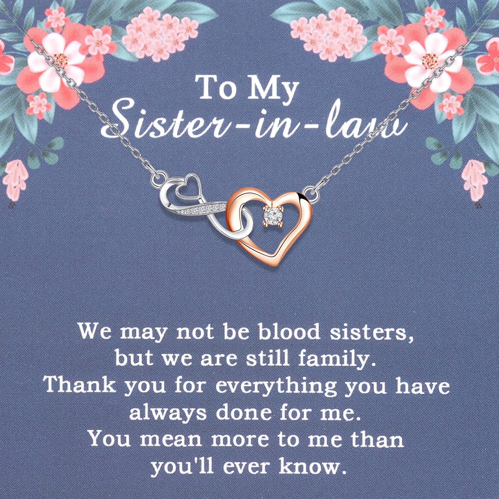 PLITI Sister In Law Necklace For Women Sister In Law Wedding Gift From Bride Bonus Sister Birthday Infinity Heart Necklace, M, Stainless Steel, No Gemstone