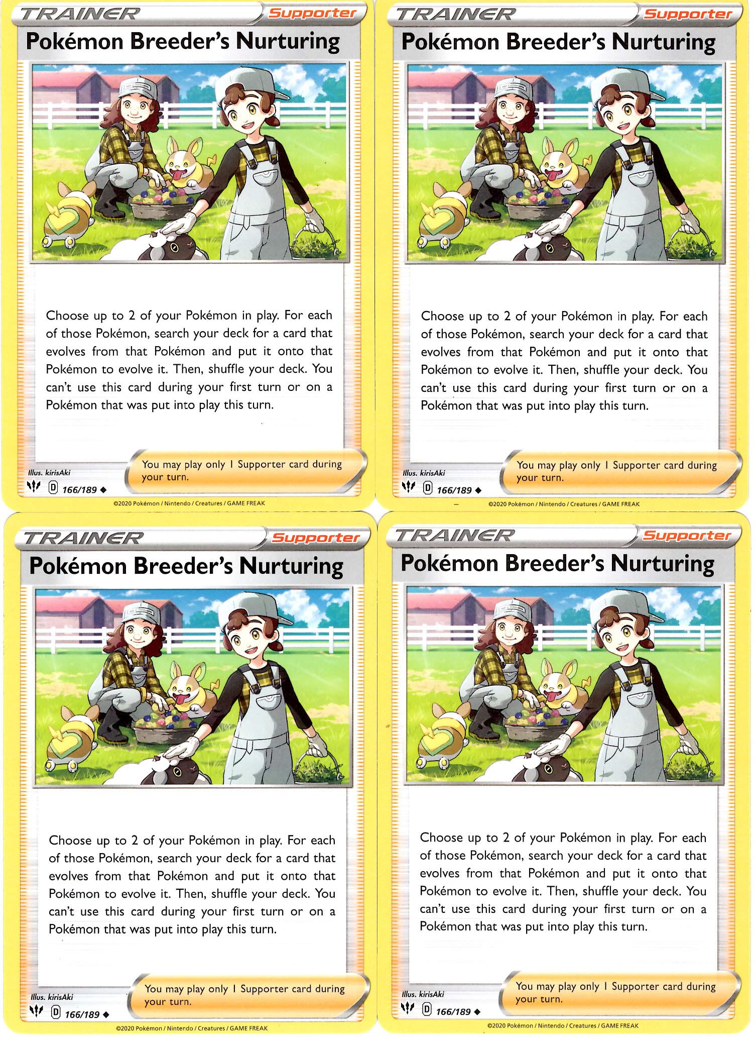 Pokemon Trainer Card Set - Pokemon Breeder's Nurturing - Darkness Ablaze Supporter x4 Lo/t