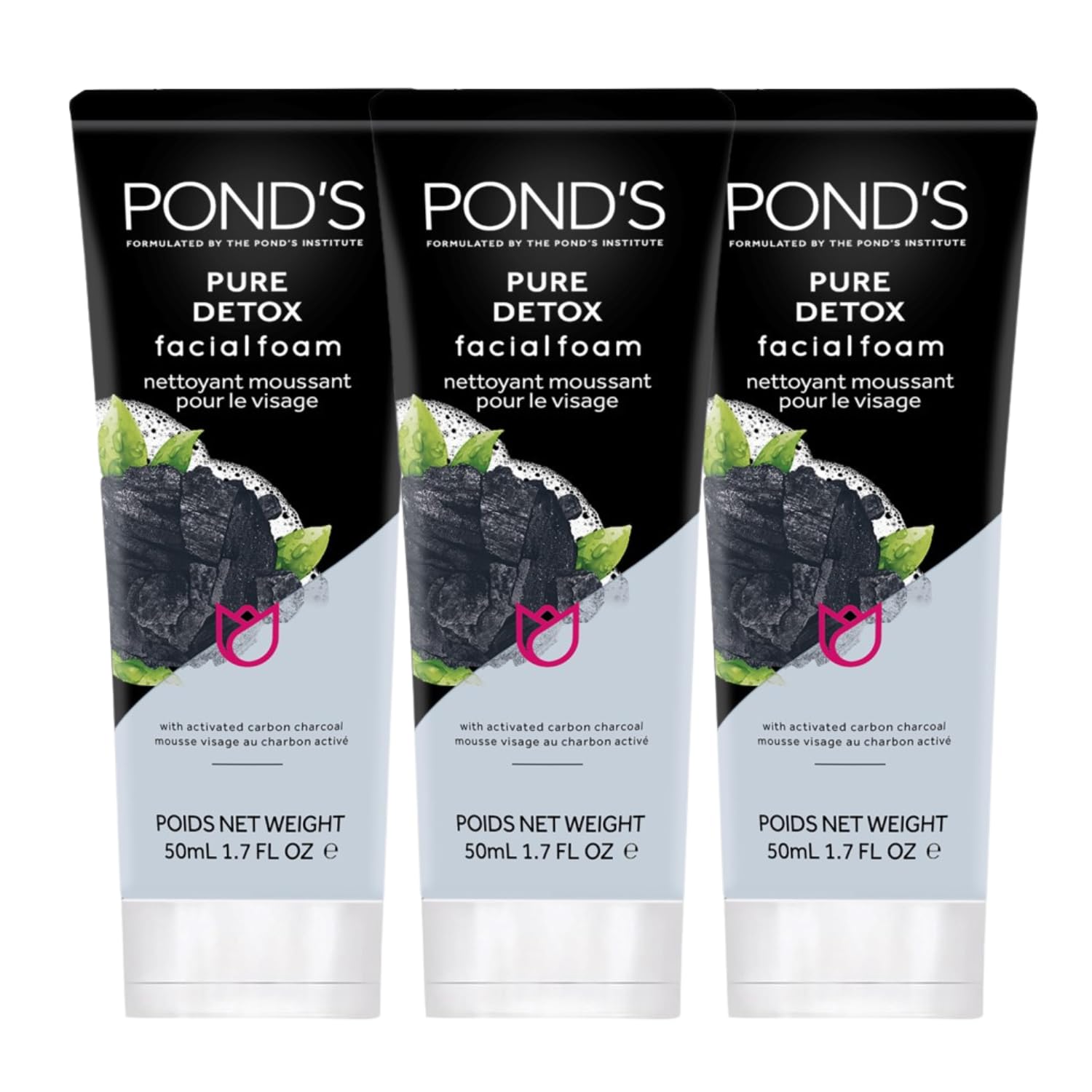 Pond's Pure Detox Facial Foam, Deep Cleansing with Activated Charcoal, Facial Wash, 3- Pack of 1.7 Oz Each