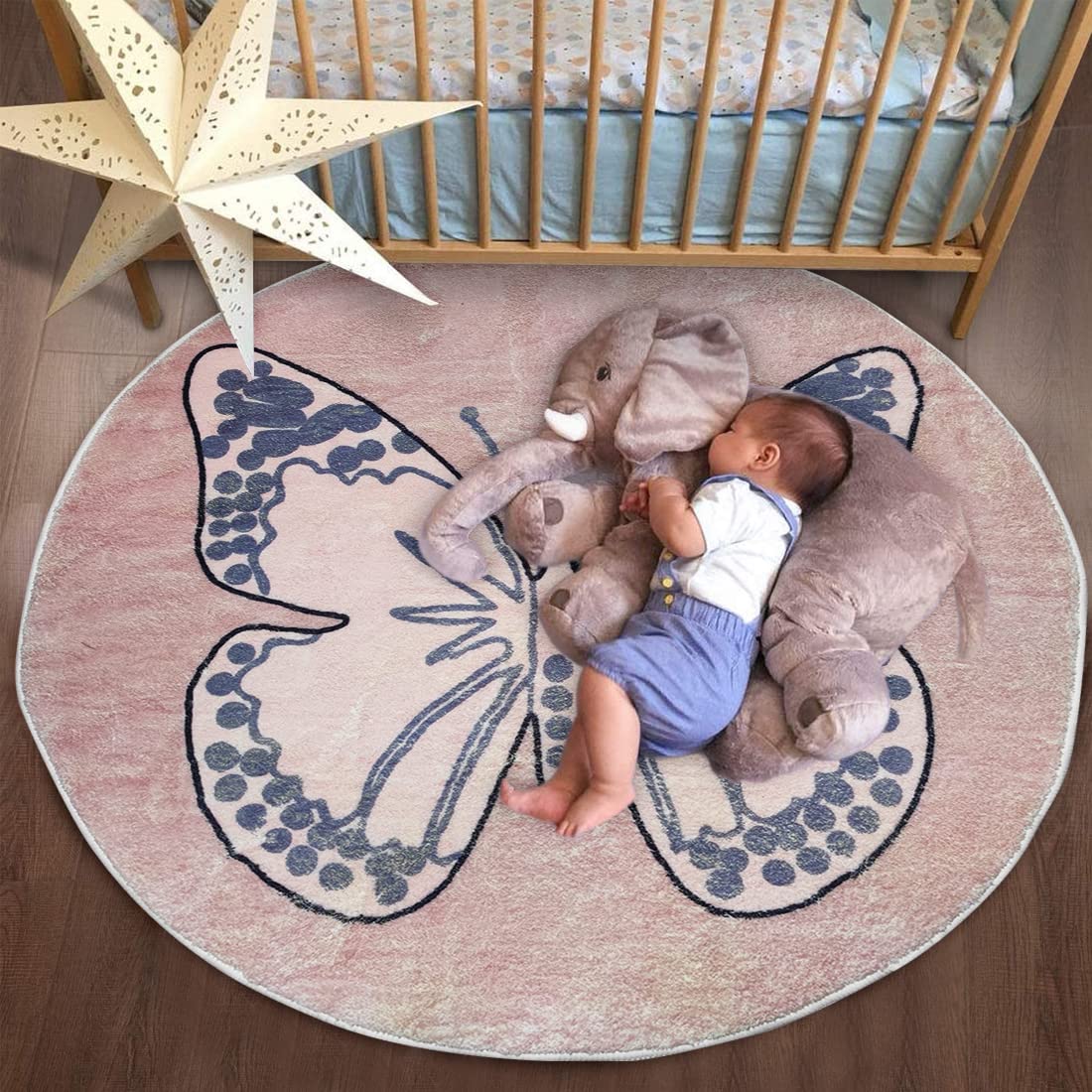 Poowe Cute Lion ABC Kids Play Mat Baby Nursery Rug Round Educational Alphabet Soft Area Rug Non Slip for Children Toddlers Bedroom (Round 39.4", Butterfly)