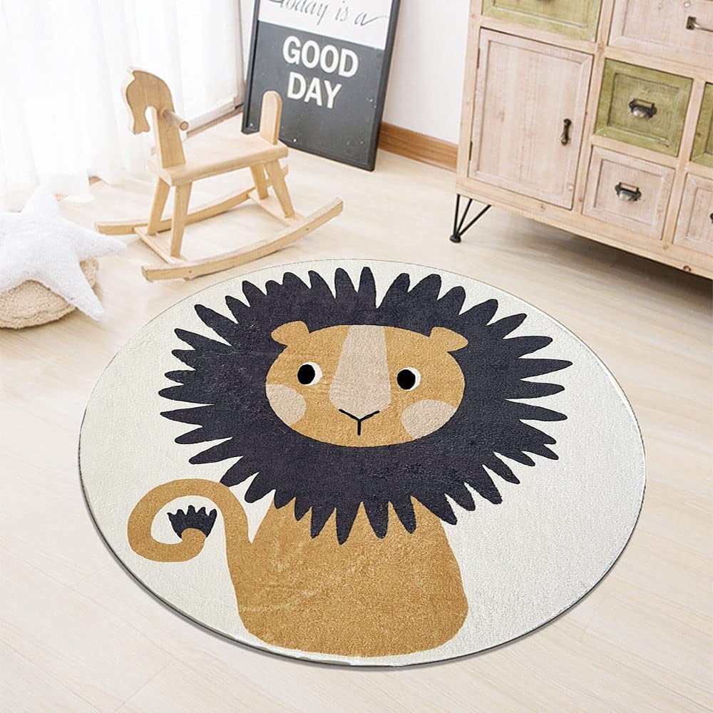 Poowe Cute Lion Kids Play Mat Baby Nursery Rug Round Educational Alphabet Soft Area Rug Non Slip for Children Toddlers Bedroom (Face Lion, Round 47.2")