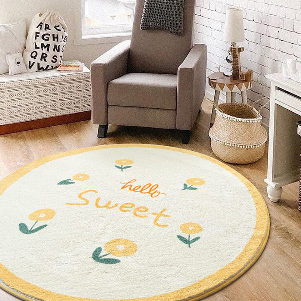 Poowe Round Kids Playroom Rug - Soft Alphabet Nursery Rug for Bedroom - Playtime Collection, Learning & Game Carpet for Classroom, Best Shower Gift for Infant Toddlers (Round 47.2", Flower-Sweet)