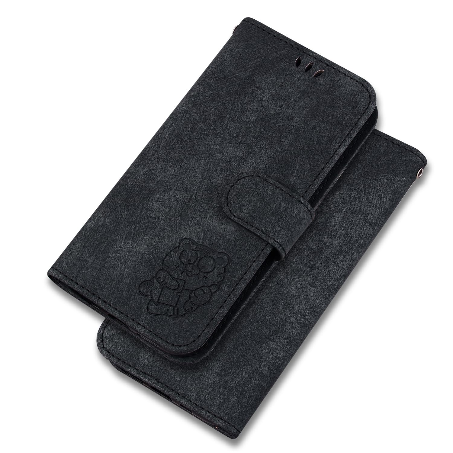 Popular Embossed Solid Color Flip Cover Phone Cover Compatible with Motorola Moto G04 G24 G34 MotoG34 5G Phone Shell Stand Card Slot Wallet Clip Phone Case (Black,Moto G34 5G)