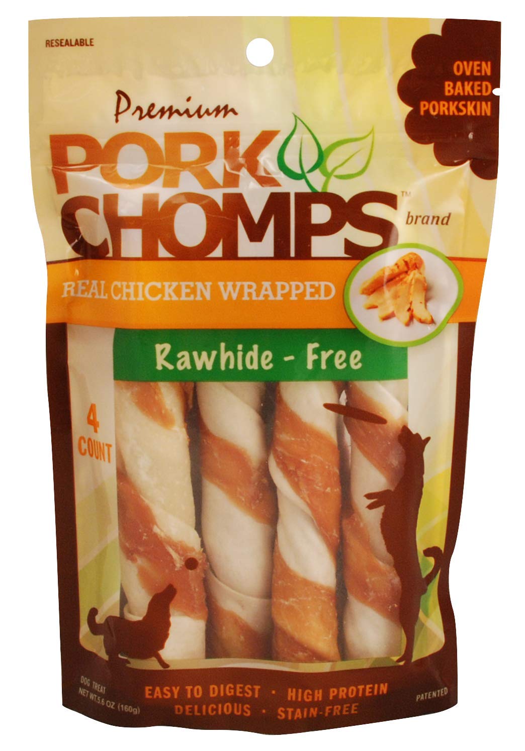 Large Pork Skin Twists Wrapped with Real Chicken-Rawhide Free