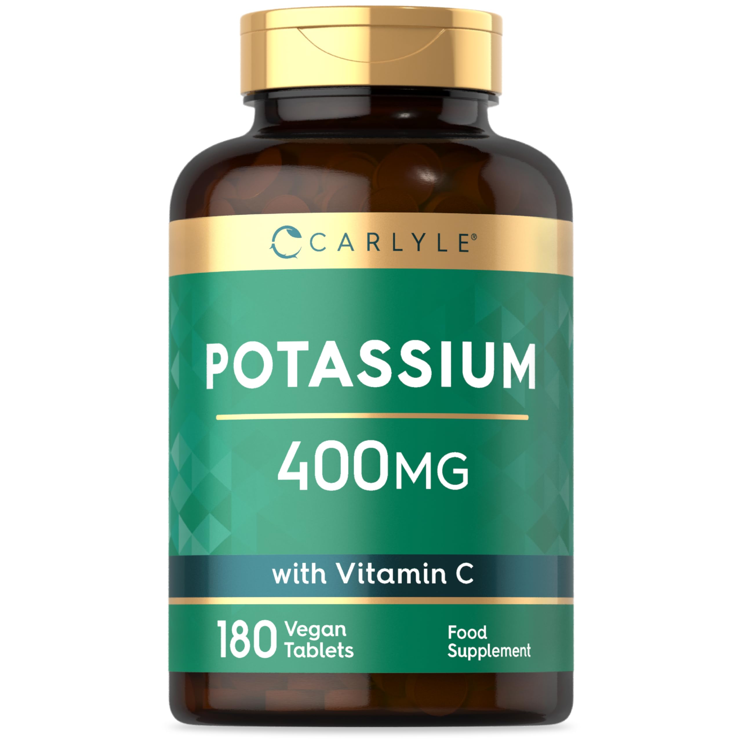 Potassium Supplement 400mg with Vitamin C 100mg | 180 Vegan Tablets | Contributes to Normal Blood Pressure, Muscle Function and Nervous System Function | Immune System Support | by Carlyle
