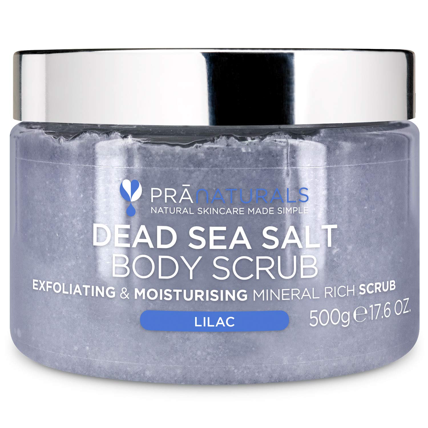 PraNaturals Dead Sea Salt Body Scrub 500G - Hydrating & Moisturising, Natural Oils & Minerals, Exfoliating, Softening & Nourishing, All Skin Types, No Parabens, Vegan & Cruelty Free (Lilac)