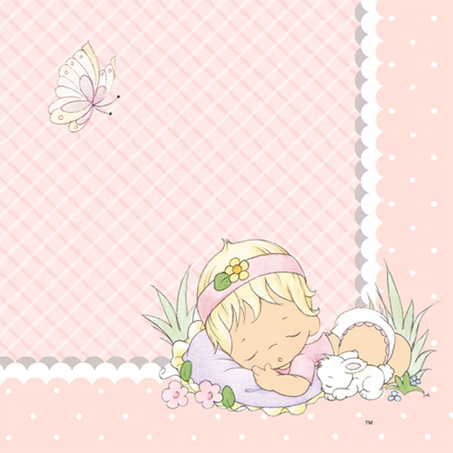 Want a sweet way to set the table for a baby shower? The Precious Moments Baby Girl Beverage Napkins feature a beautiful sleeping baby and soft pink hues. Use the napkins with other Precious Moments pieces for a darling look! They're great for appetizers and finger foods as well as drinks! Each pack has 16 napkins.
