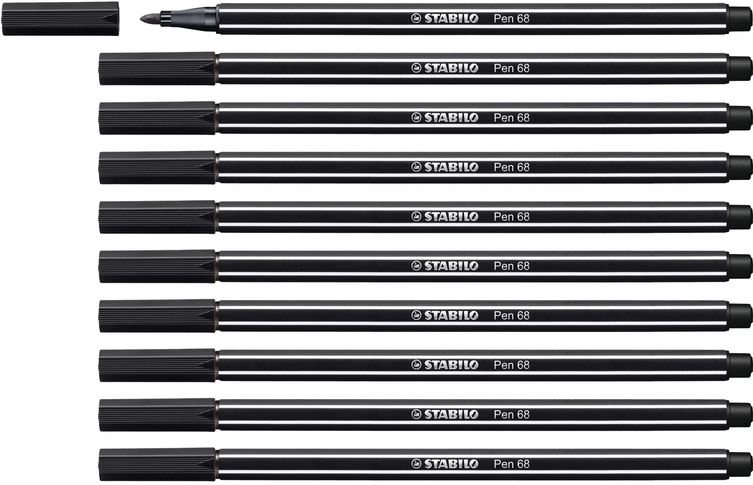 Product DescriptionSTABILO Pen 68 is the right pen for all creative colouring experts in school, university or at work or play. They are available in over 47 bright colours and fit perfectly in your pencil case. With its 1 mm felt tip the STABILO Pen 68 is excellent for mind mapping and colouring. Its special formula ink will not smudge or dry out due to its long cap-off time of 24 hours. The STABILO Pen 68 and its excellent colours make it more than just a pen - it’s a favourite!Box ContainsPen 68 black 10pcs