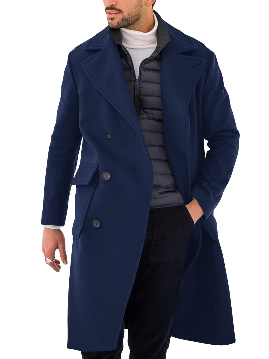 Pretifeel Mens Wool Blends Full Length Topcoat Notched Lapel Double Breasted Heavyweight Overcoat