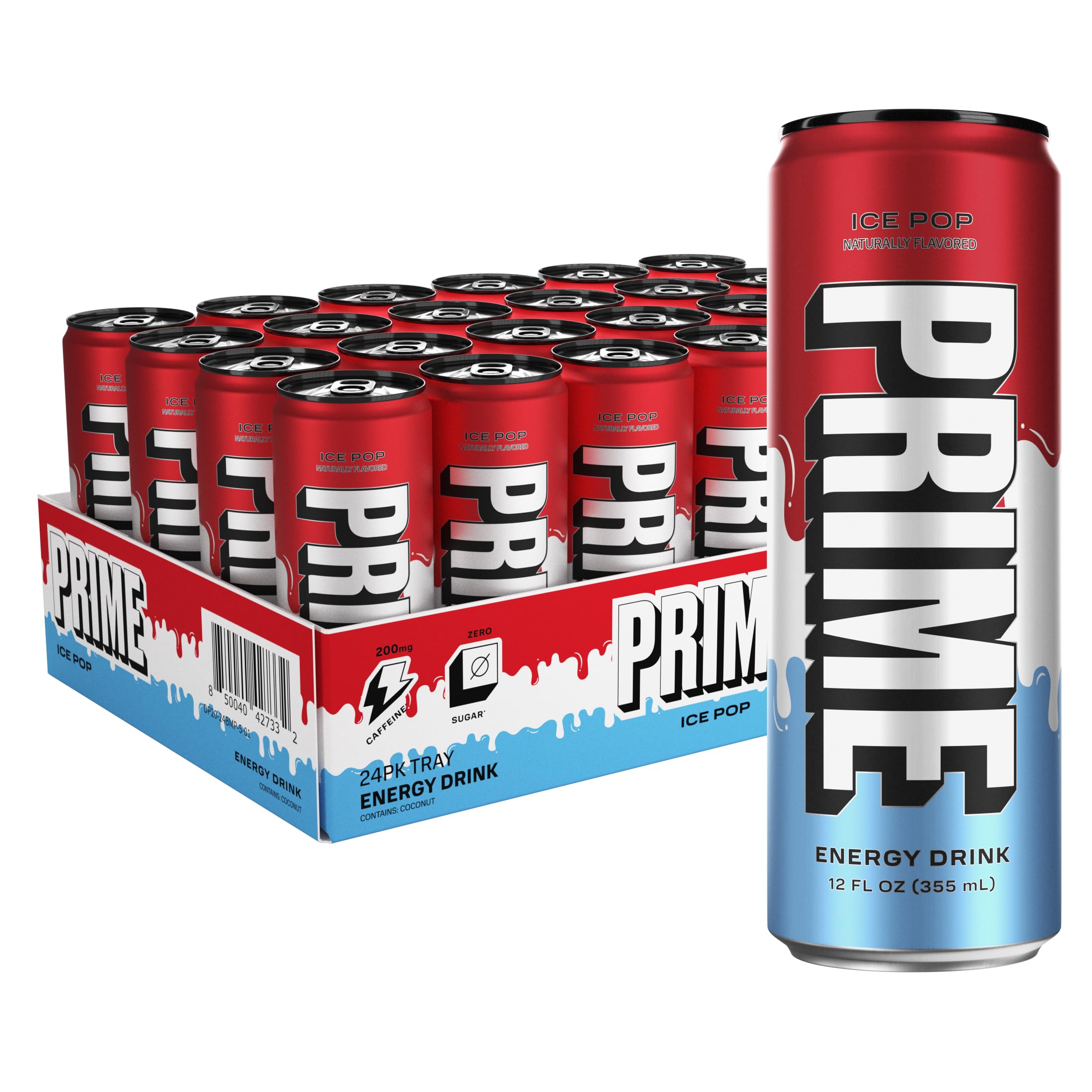 PRIME Energy ICE POP | Zero Sugar Energy Drink | Preworkout Energy | 200mg Caffeine with 355mg of Electrolytes and Coconut Water for Hydration| Vegan | Gluten Free |12 Fluid Ounce | 24 Pack
