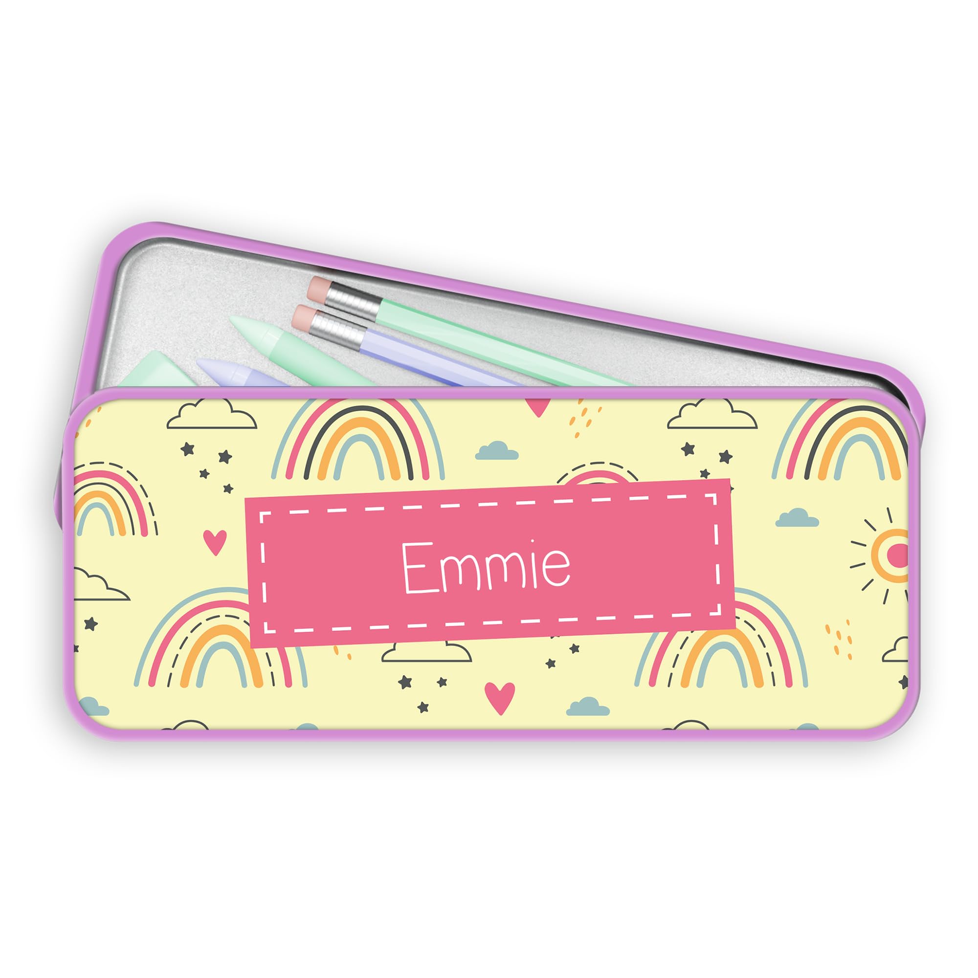 Print Maniacs Personalised Rainbow Pencil Case Tin Kids Boys Girls Back to School Stationary Organizers Bag Any Name (Pink Case)