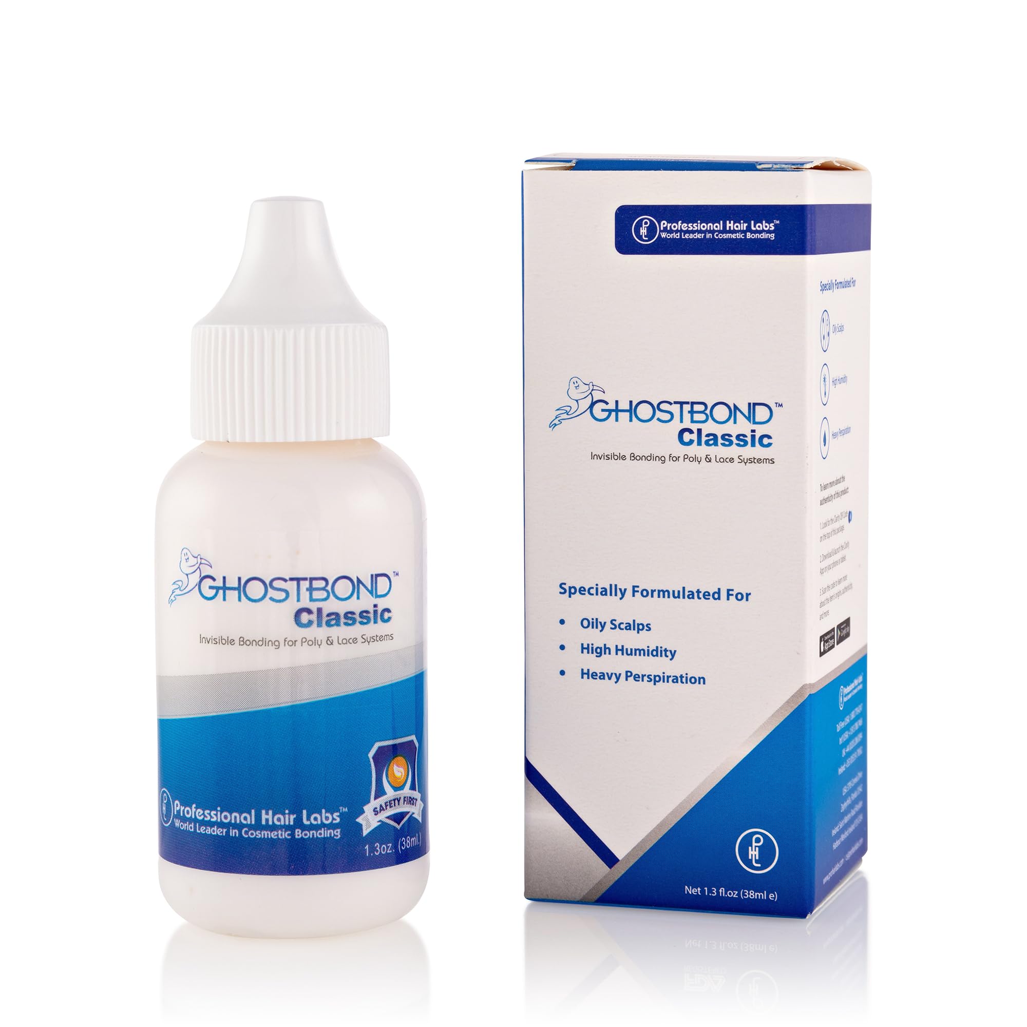 DescriptionProduct DescriptionGhost Bond is a one of a kind Safety first formulation. The reason that ghost Bond has been separated from all of the other bonds on the market to date is that it has the ability to stay completely cured throughout the 4 week hold that you expect from a bond. Ghost Bond is also water and oil resistant. What this means is that once the bond fully cures, it completely limits the chances of any water, oils or sweat permeating the bond. This bond works extremely well for humid climates, clients with over active sebaceous glands, clients that excessively perspire and most importantly clients who workout or participate in strenuous activities.Ingredientswater, co-polymer plasticsDirectionsDO NOT APPLY TO LACE BASE !1. Apply to scalp only. 2. For best results use 4 thin coatings. 3. Allow each coat turn clear before applying another coat (approx. 20 seconds). 4. After the 4th coat wait 7 minutes and press hair system into place.Safety WarningDo not swallow or allow contact with eyes. Keep adhesive in room temperature