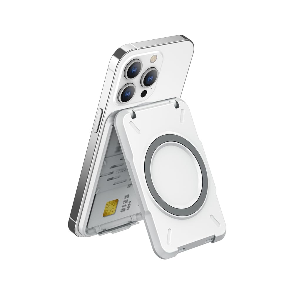 PROfezzion Magnetic Wallet Card Holder for MagSafe, RFID Blocking Hard Shell 4 Credit Card & Money Pocket Magnetic Wallet Stand for iPhone 16 15 14 13 12 Plus Max (Not for 13/12 Mini)