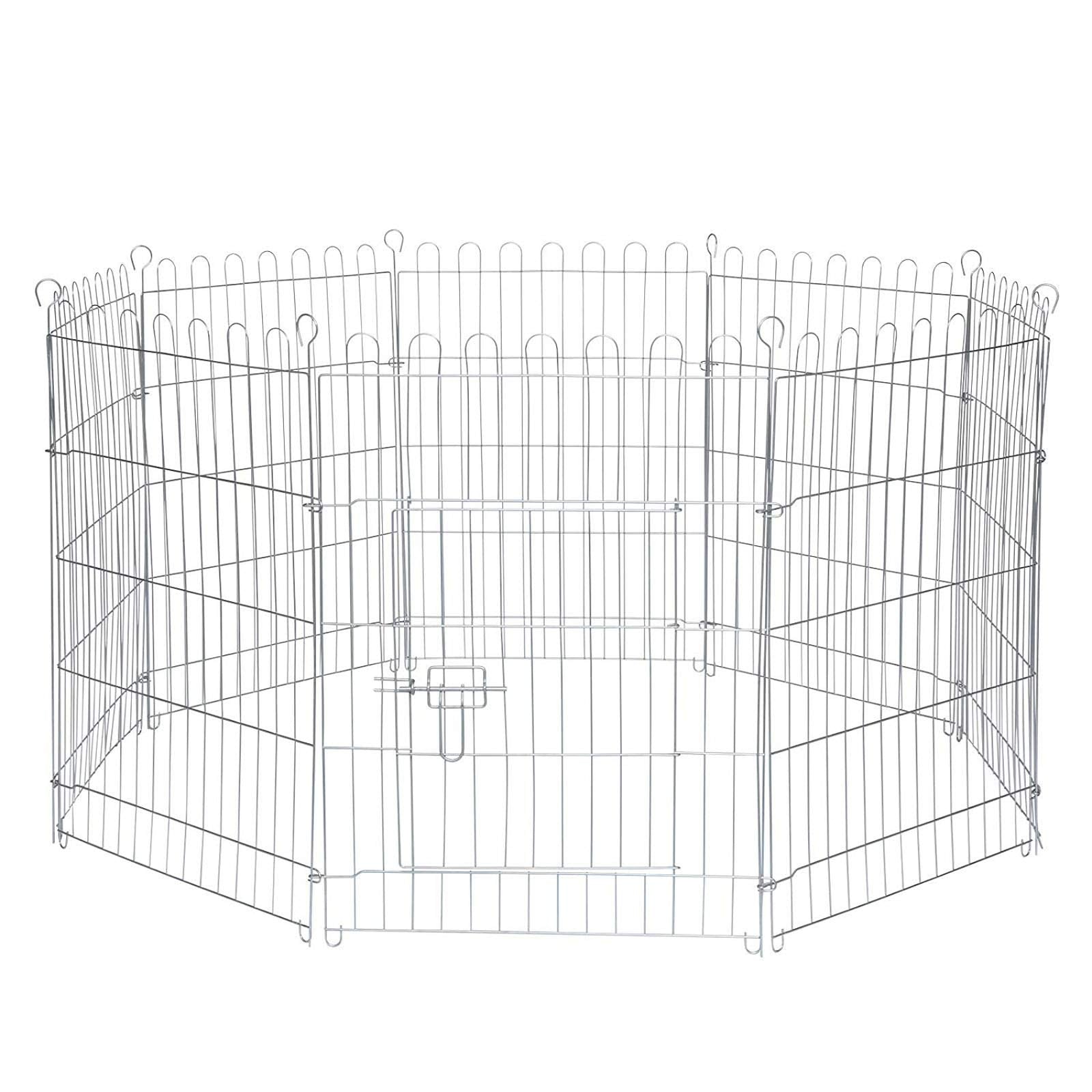 DescriptionProduct DescriptionThe lionto animal enclosure is ideal for the free run of your small animals and rodents. You get enough exercise and can also play and play with multiple animals. Please note that outdoor enclosures are not suitable for permanent accommodation of rodents and small animals, but they allow them to move during short-term stays. The weather-resistant metal and the included protective net allow for indoor and outdoor use. The net can be spread over the entire enclosure and protects against rain and direct sunlight thanks to the water-repellent material. An access door with locking and rounded edges prevent animals from running away and injury. The construction of the animal playpen is simple and quick by connecting the connecting rods to the grid elements. When using a lawn, you can insert the bars into the lawn for a firmer stand. The distances between the grid elements of this rabbit fence are 3.5 cm. Each freewheel consists of 8 elements. You will receive the dimensions (S) 59 x 38 cm. Box contents: 1 x freewheel consisting of 8 elements, assembly instructions (English language not guaranteed)Box Contains1 x outdoor enclosure, 8 elements.
