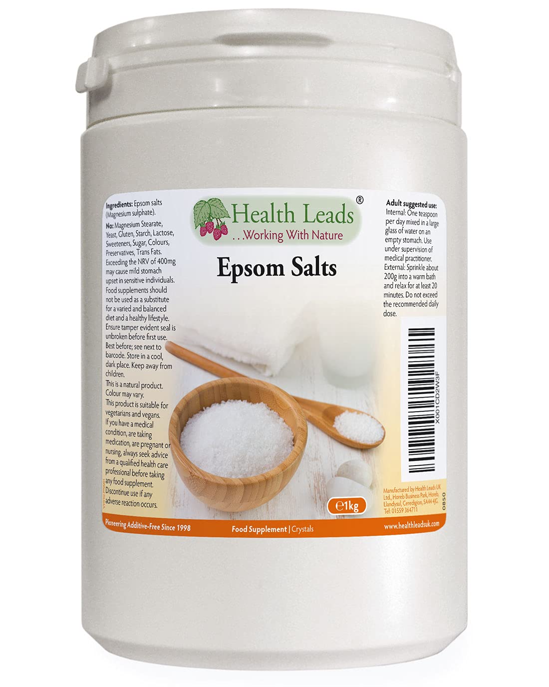 Pure, Food Grade Epsom Salts, Magnesium Sulphate, Vegan, Non-GMO, Widely Used to Help Relax Aching and Tired Muscles After Sports and Exercise, Resealable Container, Easy to Use (1kg)