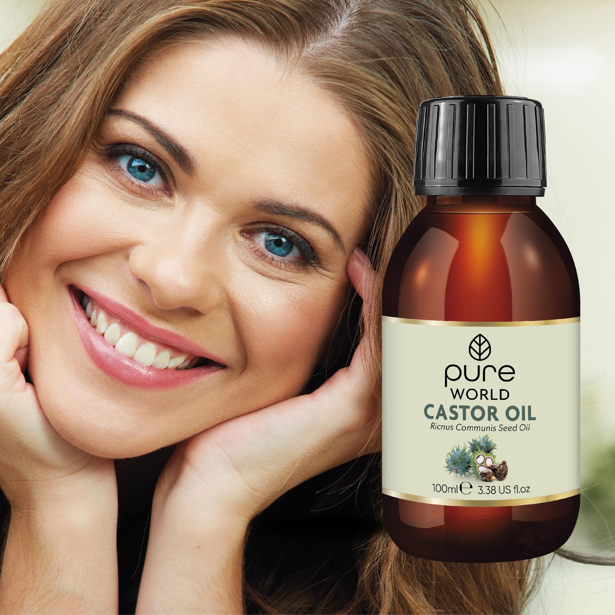 Pure World Natural Castor Oil 100ML Cold, & Freshly Pressed 100% Pure and Undiluted Hexane Free Eyebrows, Nails, Beard, Hair, Eyelash Growth Cruelty Free Food Grade
