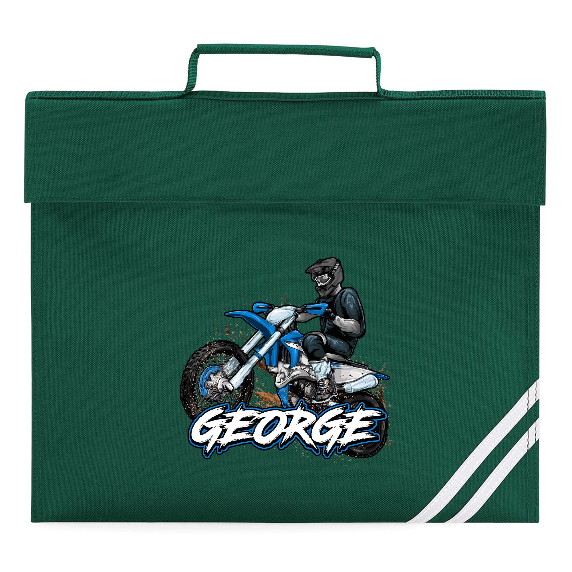 Purple Print House Personalised Dirt Bikes Book Bag, Boys Back to School Gifts, Custom Bags for Kids Who Loves motorbikes. Primary and Nursery Child Bookbag, Boys and Girls, One Size, Bottle
