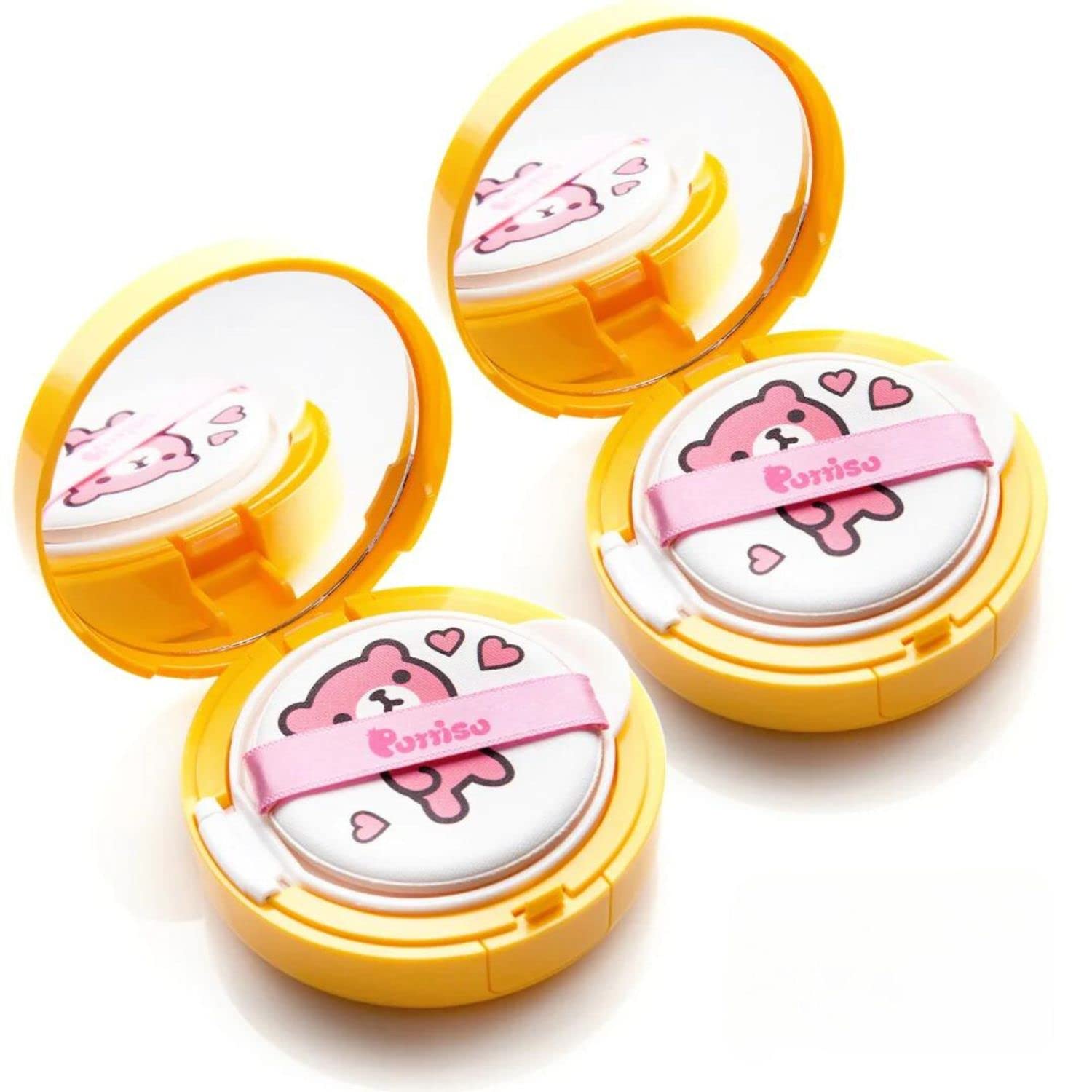 Physical sunscreen for child's delicate skin. Non-greasy liquid, packaged in a compact-like container. Lightly press on the foam which holds liquid sunscreen with our character puff and gently pat on your face to protect the skin from UV rays. When it's running out, press the foam with the puff all the way down to the bottom and corners of the container to use the last portion.