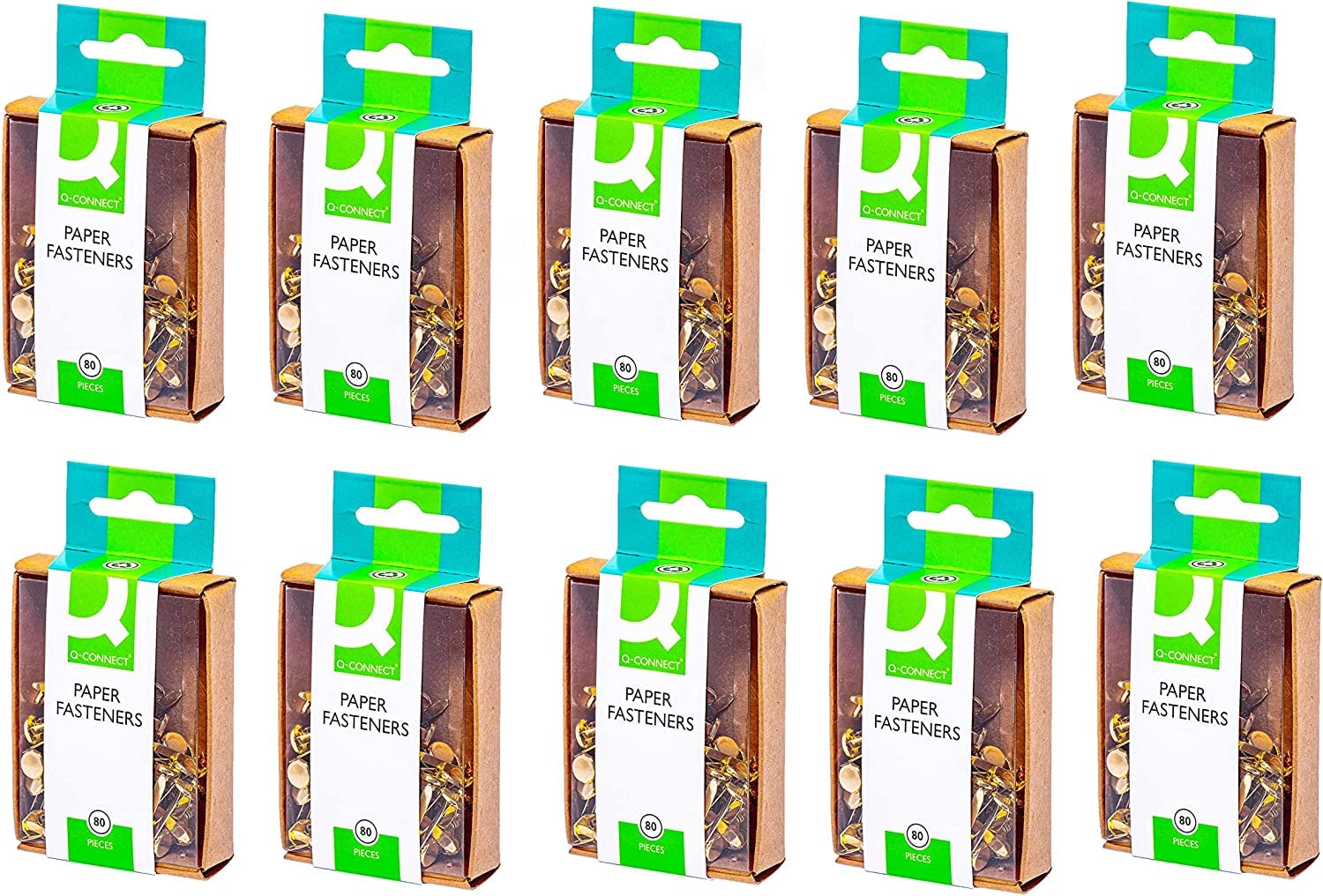 Ideal for temporarily securing punched papers, these Q-Connect paper fasteners feature a sharp tip and a flexible, durable metal construction. Ideal for general home and office use, the fasteners have a 17 mm capacity and are supplied in 10 handy plastic hanging packs. Each pack contains 80 paper fasteners (800 in total).