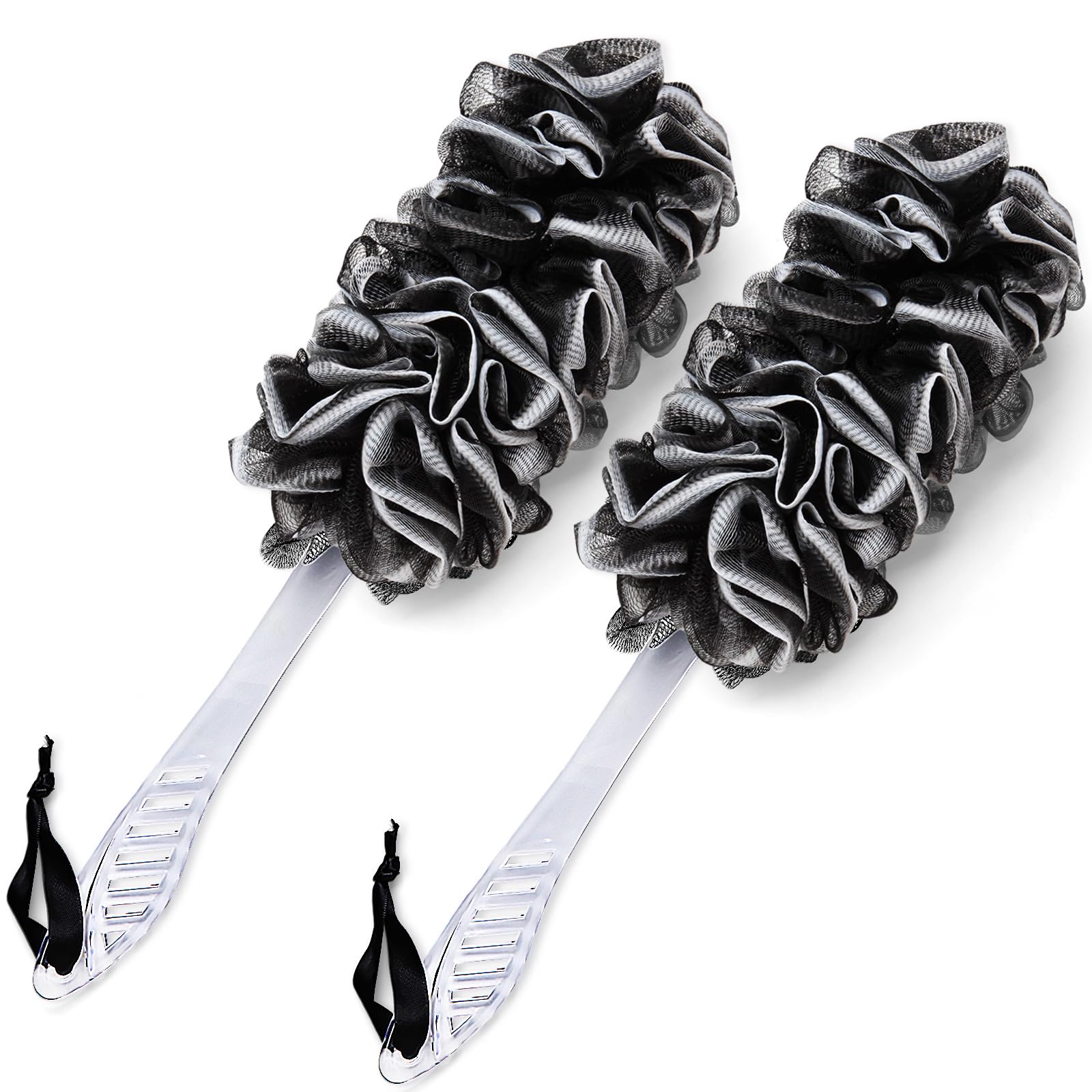Qewro 2Pack Back Scrubber for Shower, Dual-Sided Loofah on a Stick as Shower Brush Exfoliating Body with Long Handle, Loofah Sponge Mens Loofah Bathing Accessories for Women
